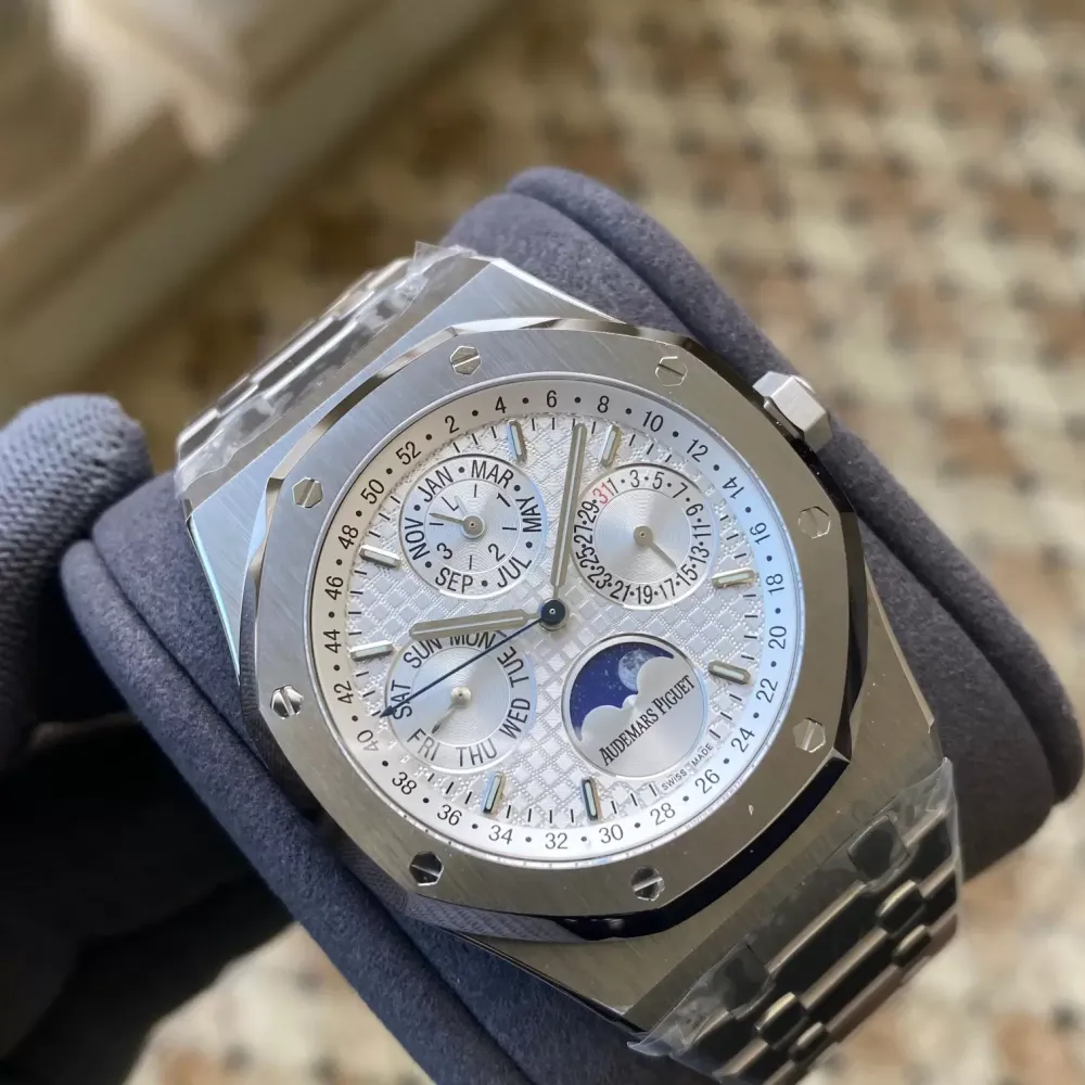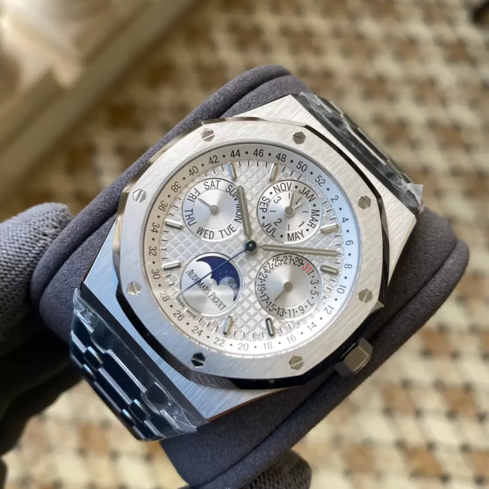 AP Royal Oak 41mm Complicated 26574 SS APS F1:1 Best Edition Silver Dial on SS Bracelet A5134 (CHS)