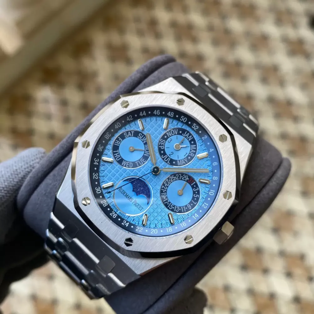 Movement Base Movement: Asian 23J Automatic Movement at 21600vph Decoration: Platinum plated movement plate and rotor which is made according to the genuine movement, the best looking AP Calibre Movement