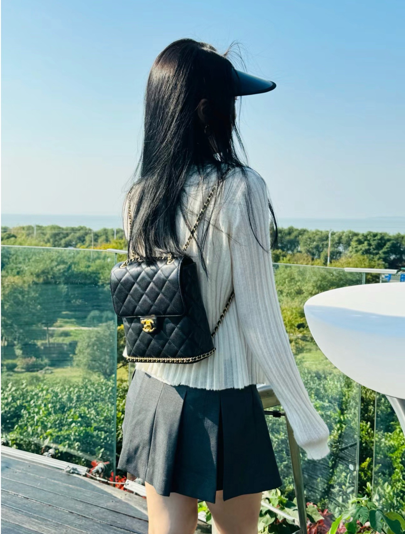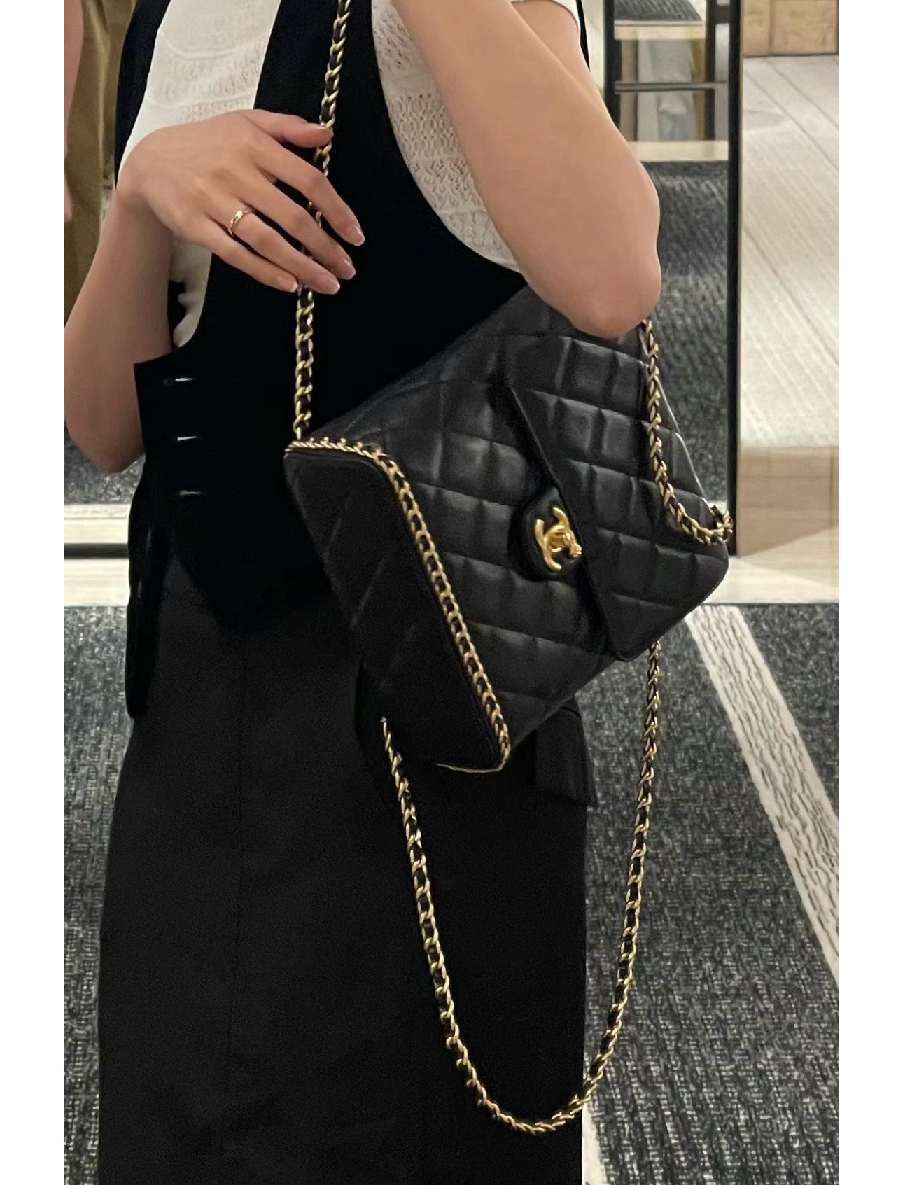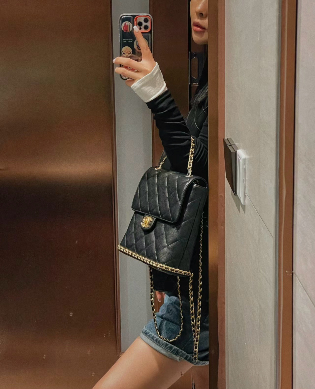 Cowhide and litchi leather with hardware chain, the whole is more vintage fashion, more cool feeling than other models 👍 really like the bottom of a circle of antique chain ⛓️ design, logo also brought this season's special theme meaning of camellia series hardware, really beautiful ☑️ really sweet series, while now to get it ~ ~ sincerely push push push push push 🖤