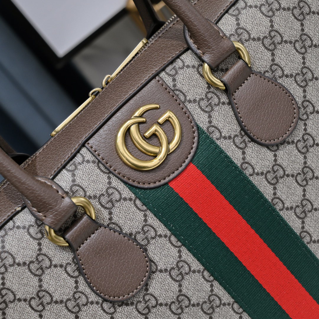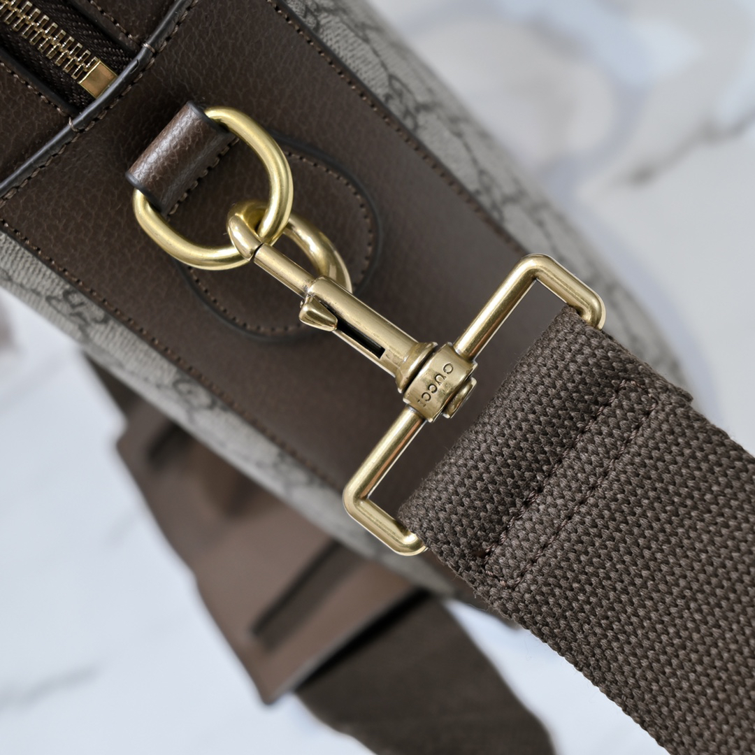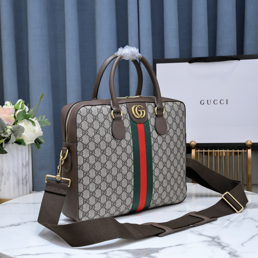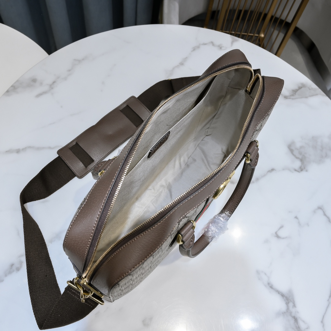 The Ophidia series introduces a brand-new designed briefcase, made of high-quality artificial canvas material, adorned with the brand's iconic stripe webbing and double G monogram hardware, two classic elements. The dual handle design, combined with a detachable shoulder strap, offers multiple carrying options. A secure zipper closure and a large internal open pocket add to the charm of the entire design.