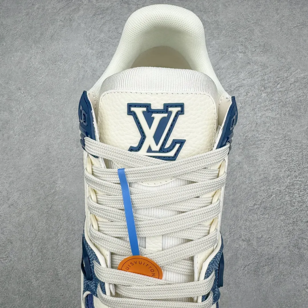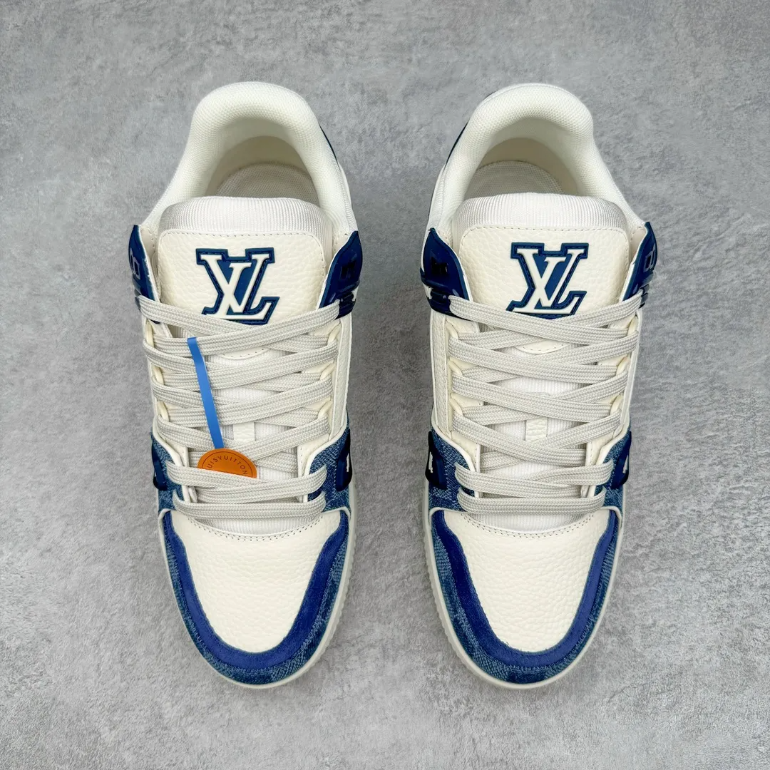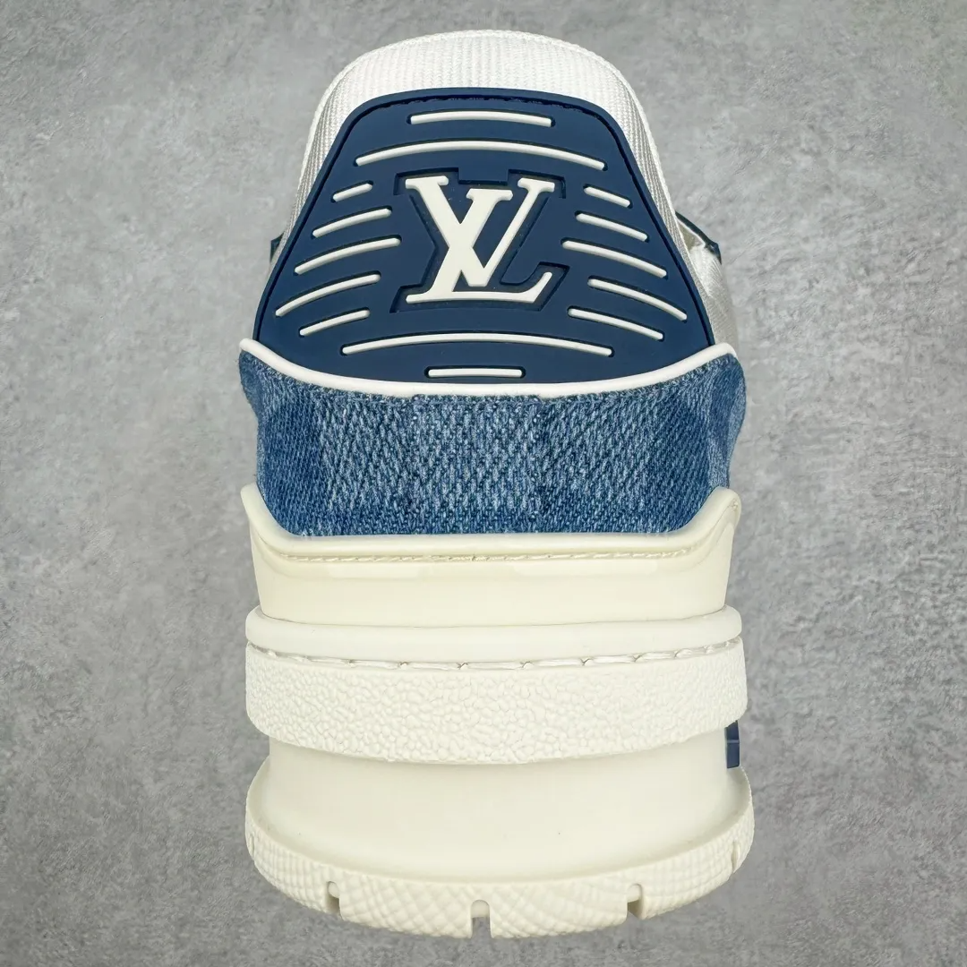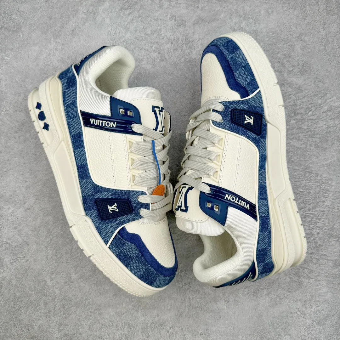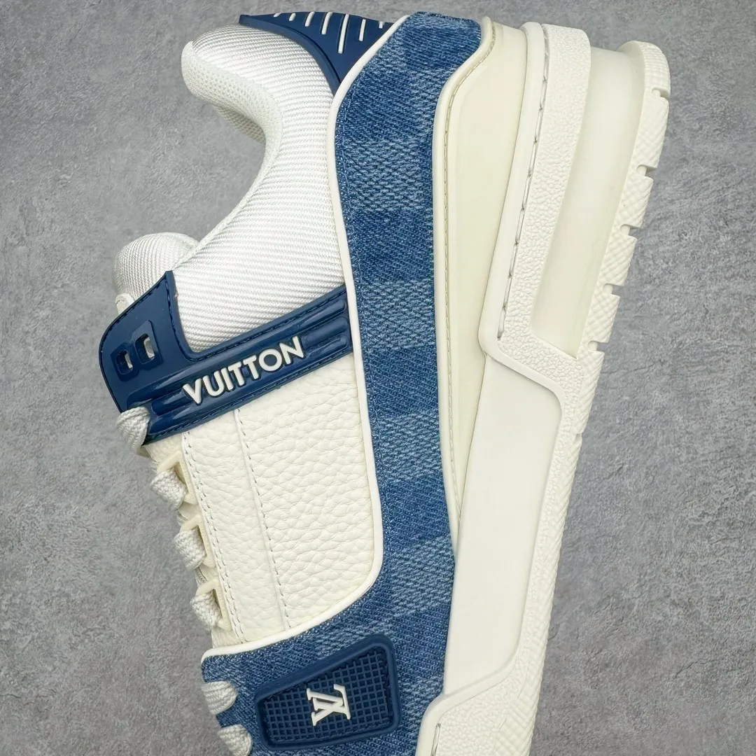 • Louis Vuitton Trainer LV low-top casual shoes, sneakers, athletic shoes, men's and women's shoes, white and blue checkered 1ACPRW
