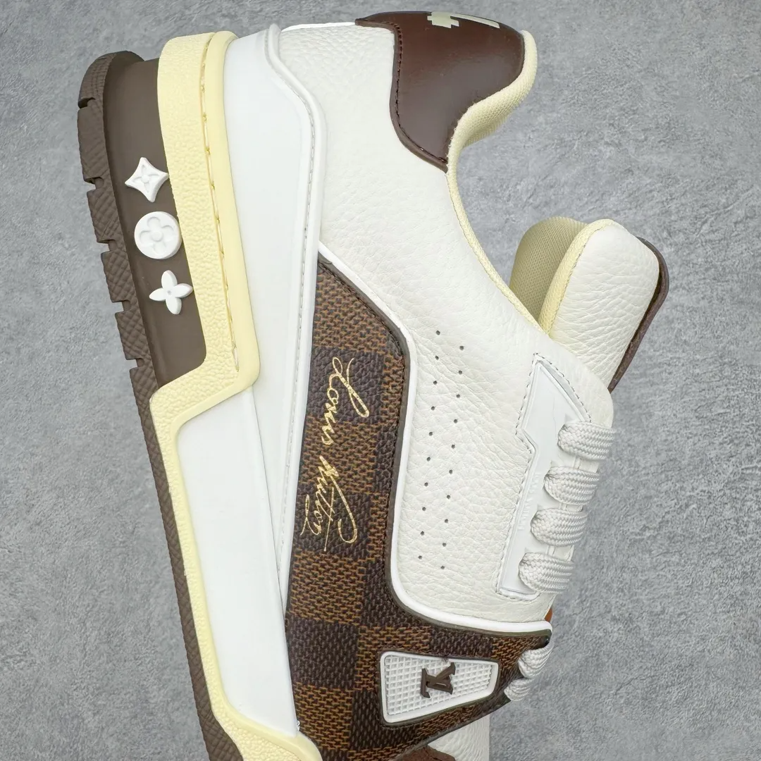 Louis Vuitton Trainer LV low-top casual shoes, sneakers, athletic shoes, men's shoes, women's shoes, white, brown, black, checkered. 1ACWUE