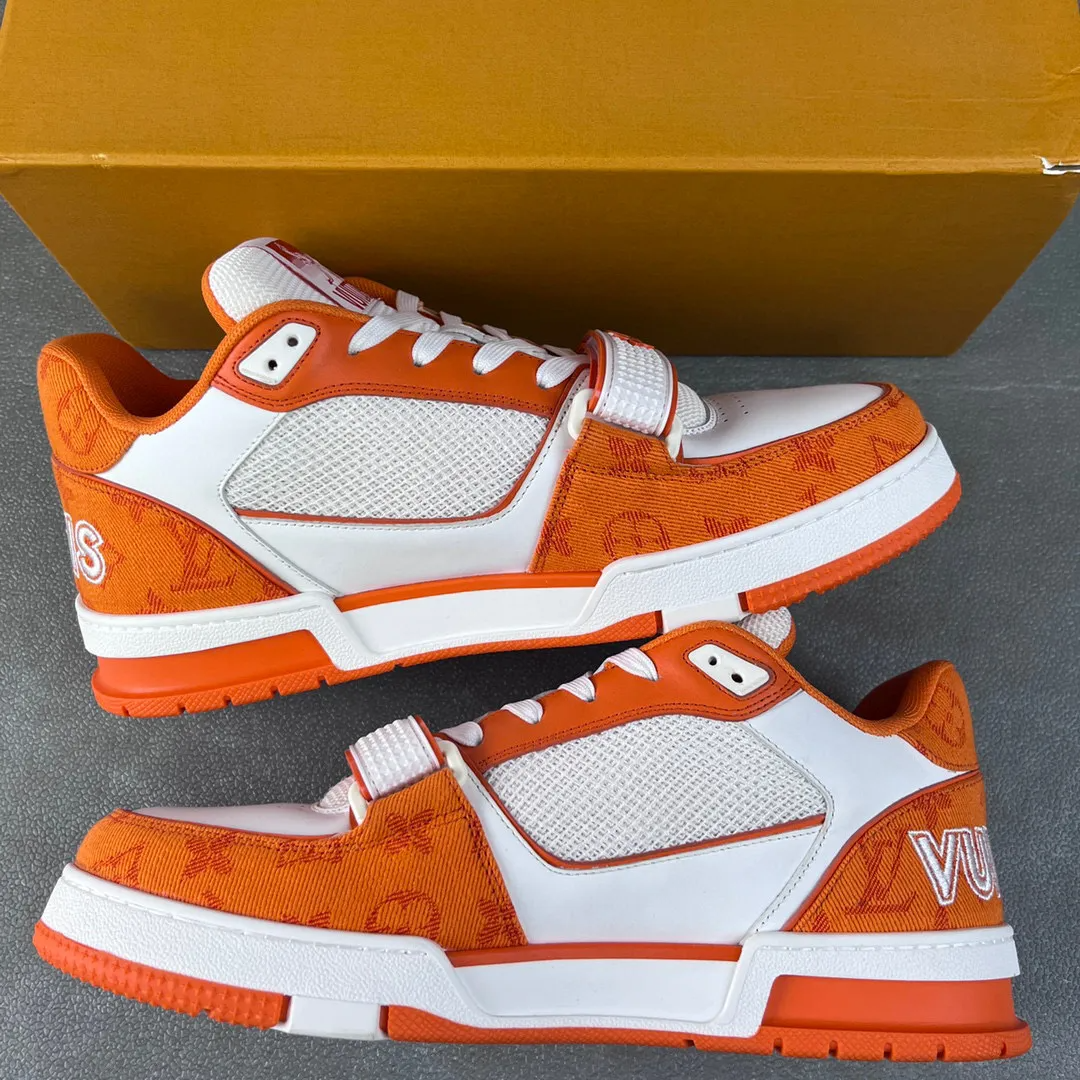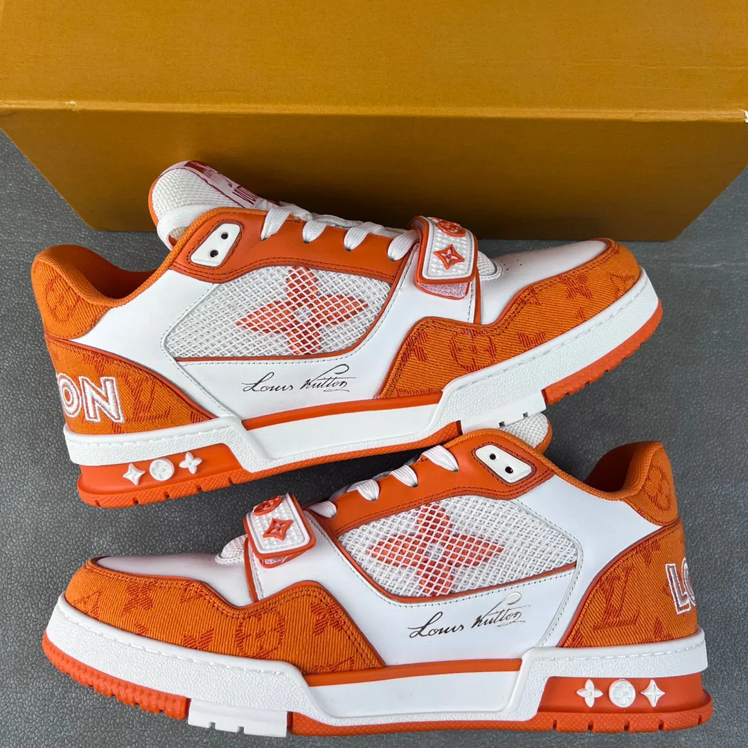 • Louis Vuitton Trainer Velcro Low-top Casual Shoes, Sneakers, Athletic Shoes, Men's and Women's Shoes, White/Orange, 1A9ZBI
