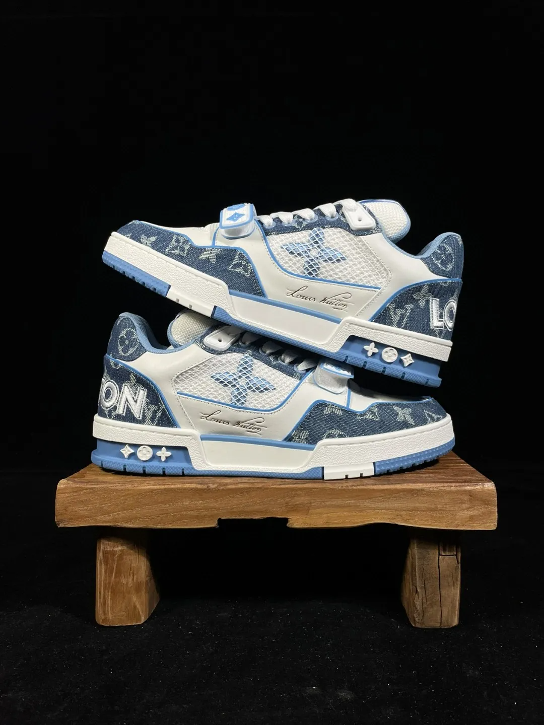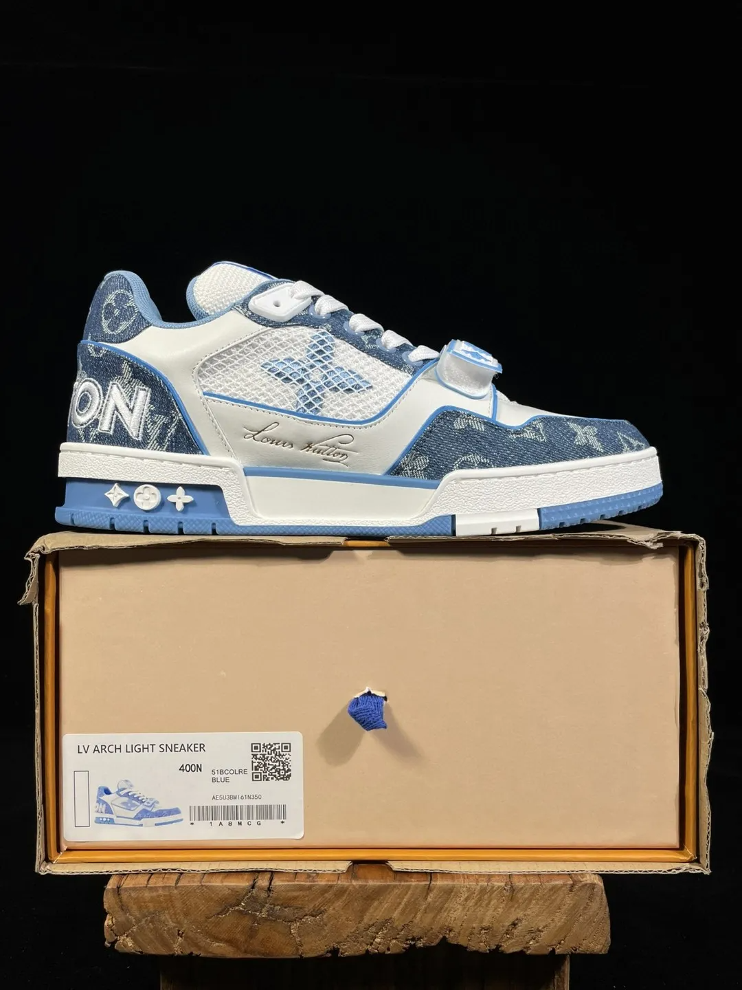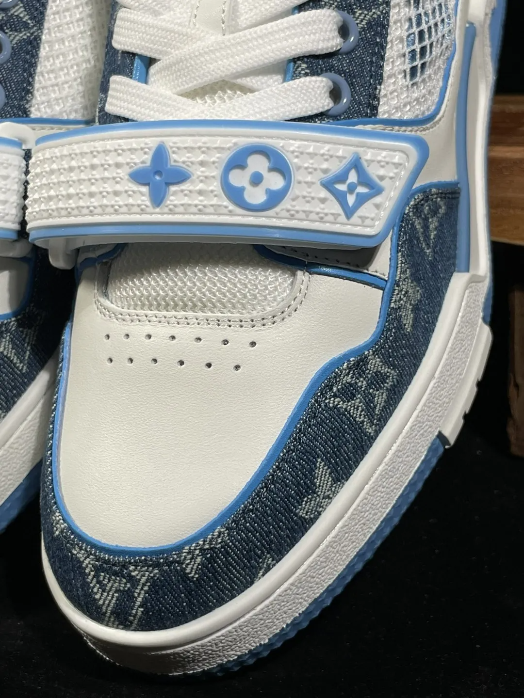 • Louis Vuitton Trainer Velcro Shoes, Blue and White Low-Top Casual Shoes, Sneakers, Men's and Women's Shoes 1A9ZI6