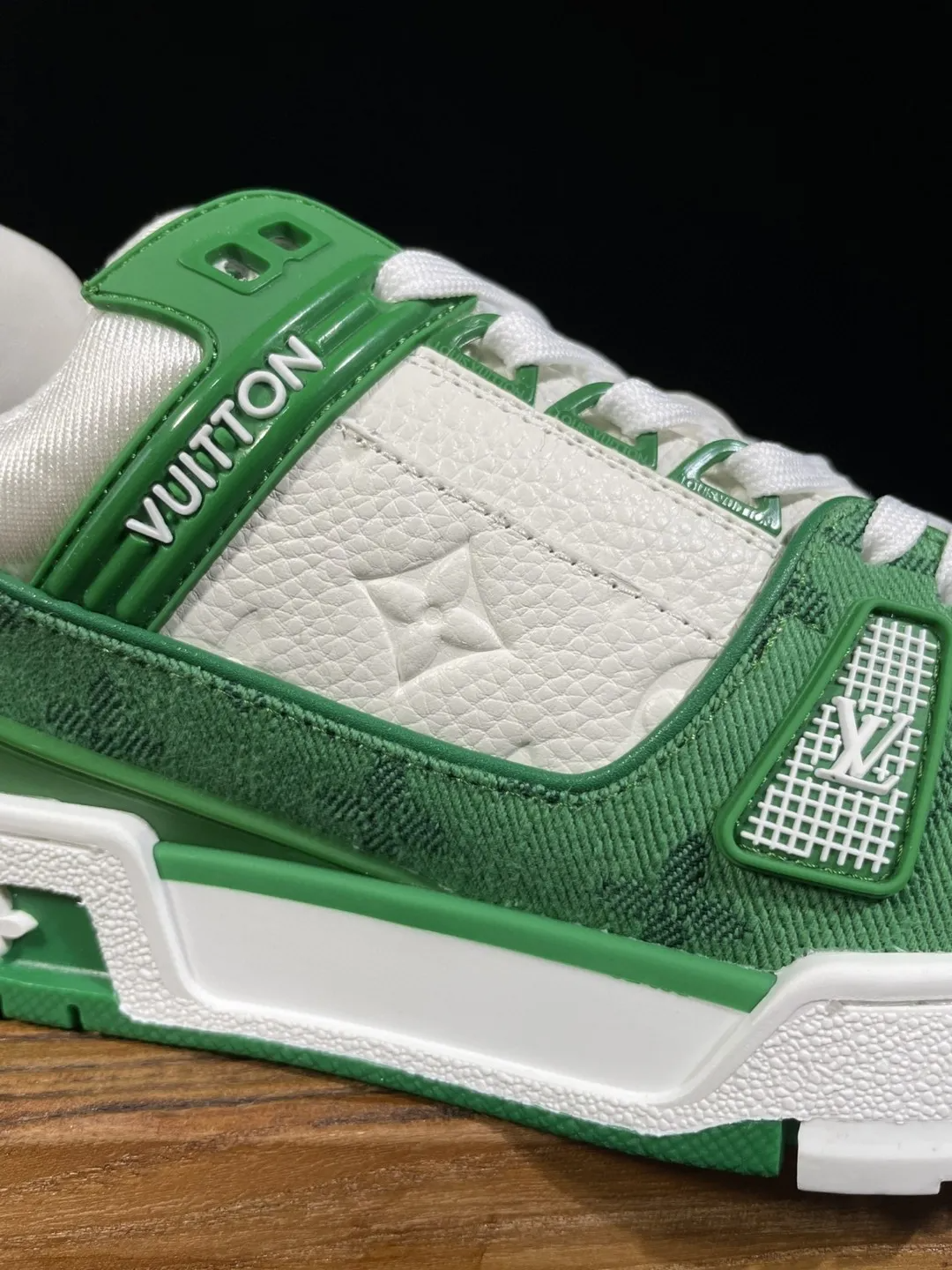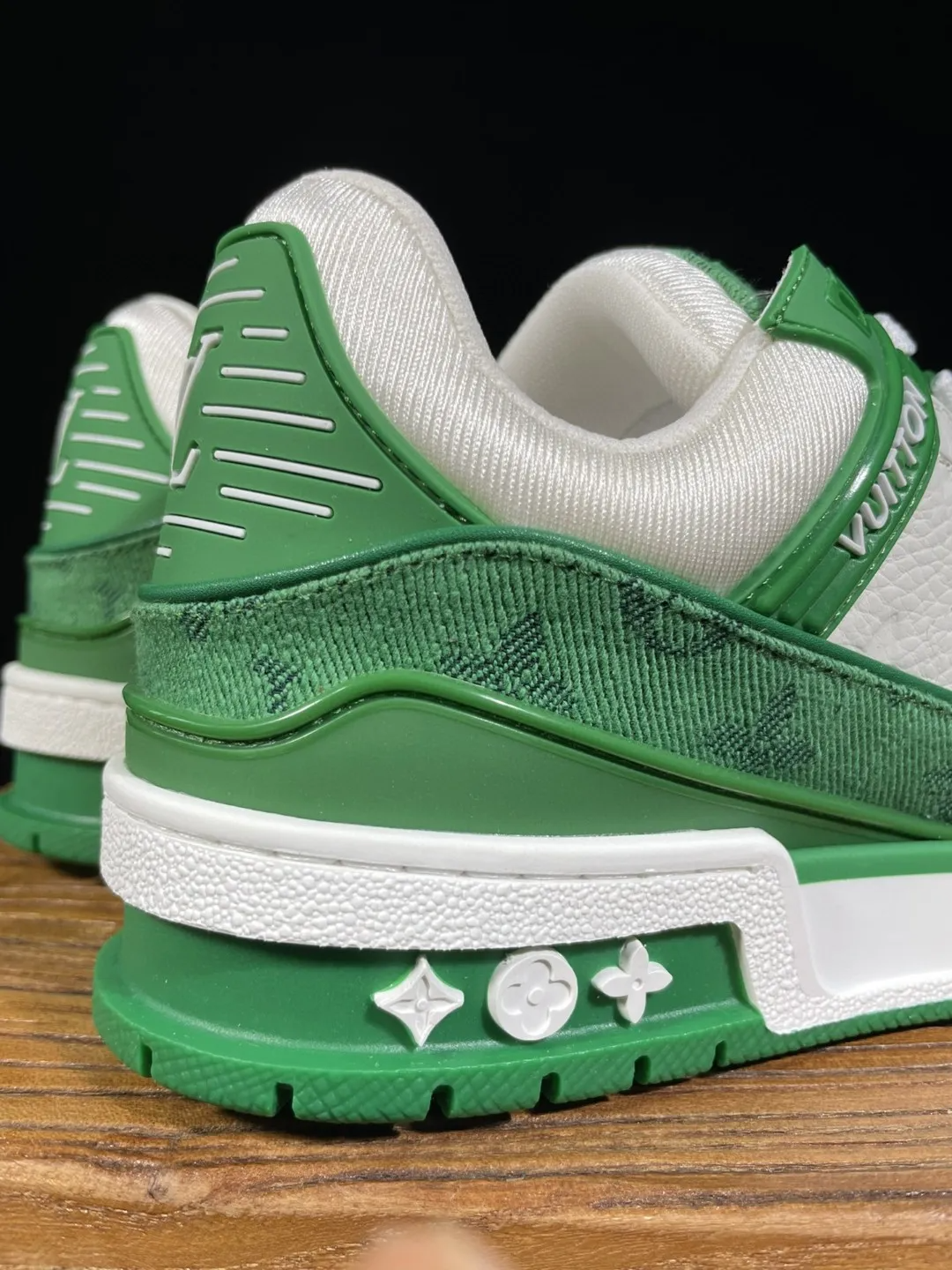 • Louis Vuitton Trainer, green and white, low-top casual shoes, sneakers, athletic shoes, men's shoes, women's shoes 1A9JI1