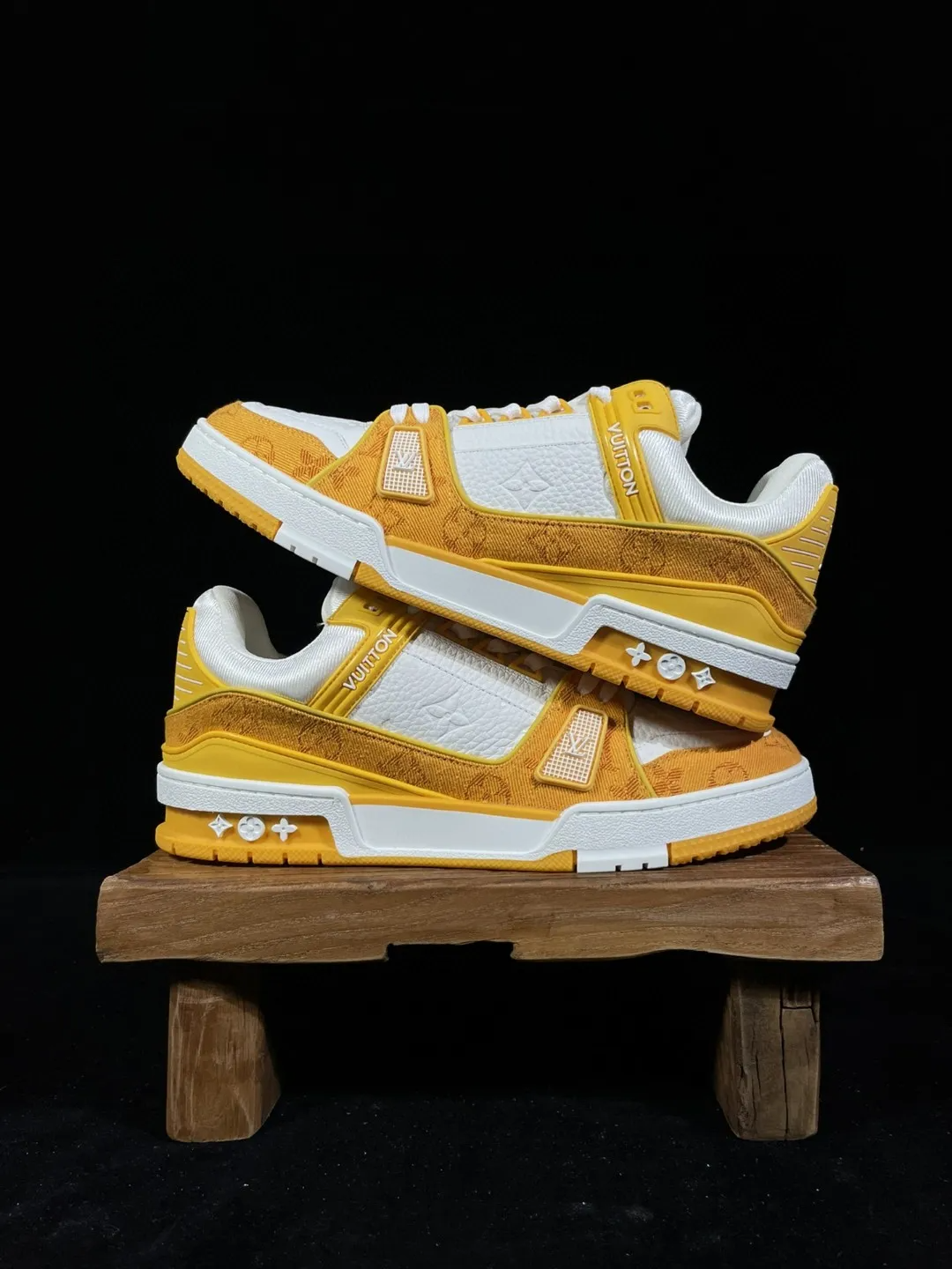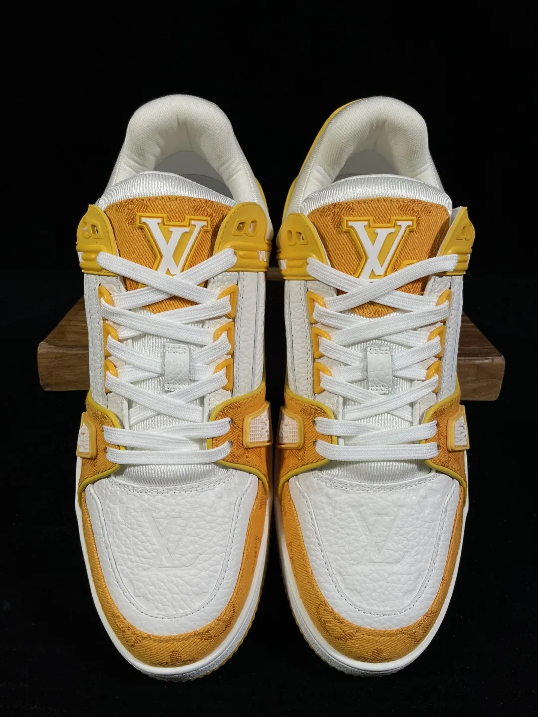 Louis Vuitton Trainer low-top casual shoes, sneakers, athletic shoes, men's and women's shoes, 1A9JHB (yellow and white).