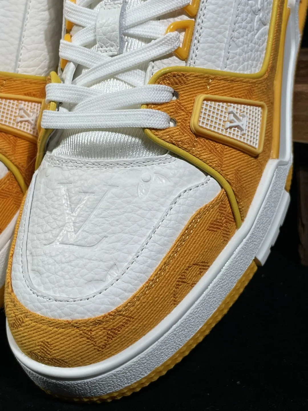 • Louis Vuitton Trainer low-top casual shoes, sneakers, athletic shoes, men's and women's shoes, 1A9JHB (yellow and white).