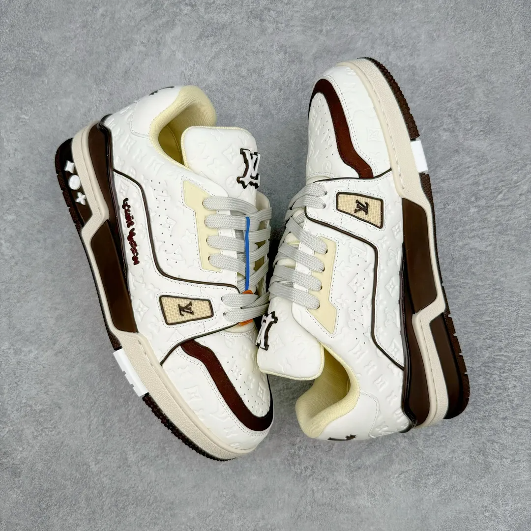 • Tyle Louis Vuitton Trainer LV low-top casual shoes, sneakers, athletic shoes, men's and women's shoes, beige/brown, all-over print, 1ACR5K