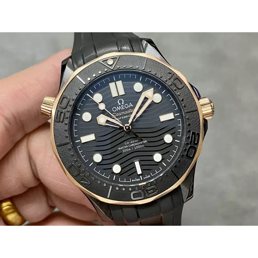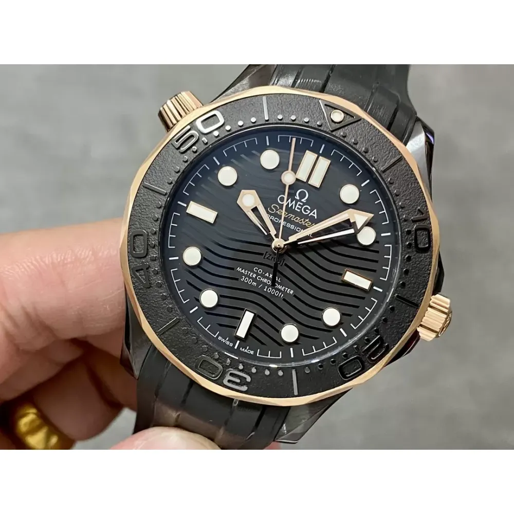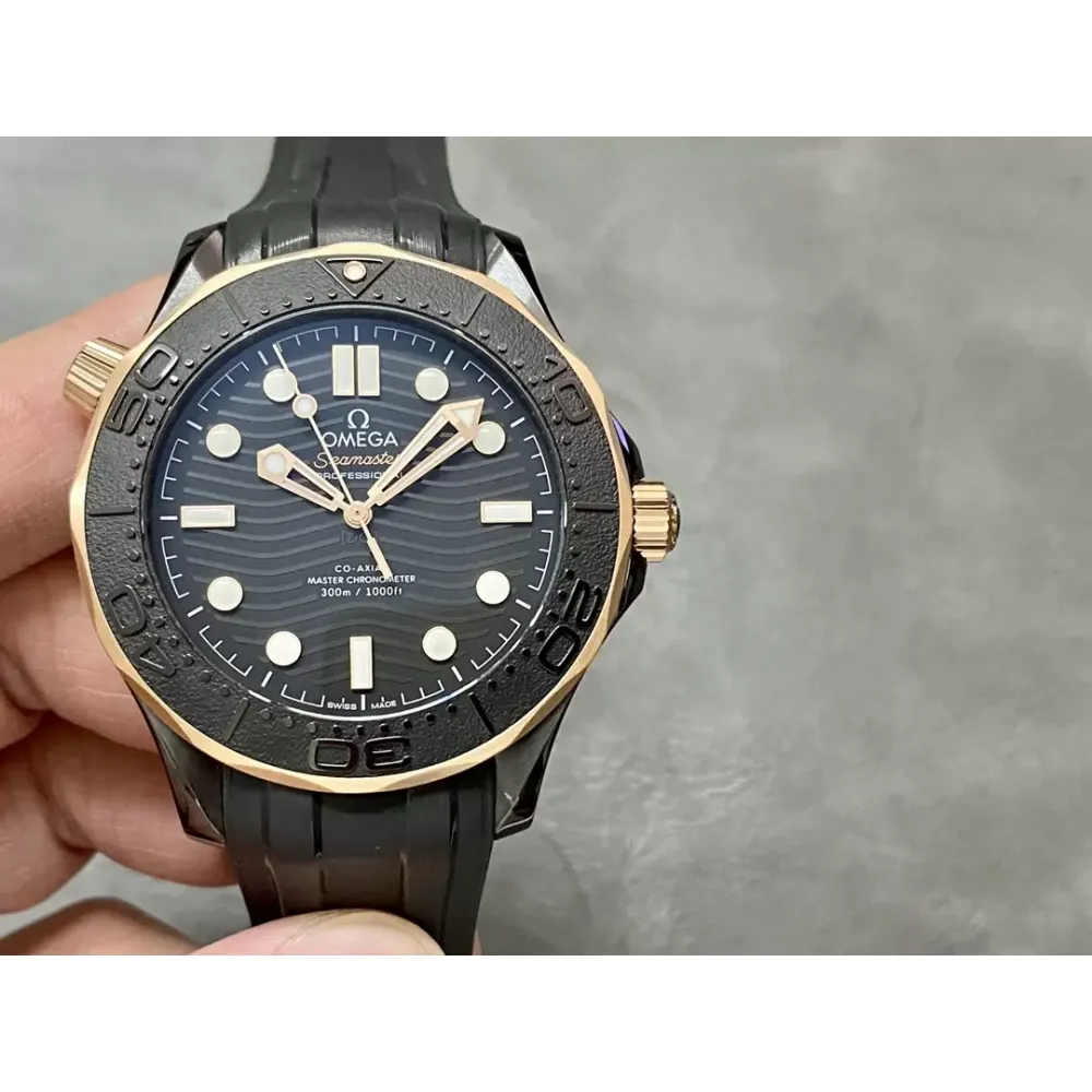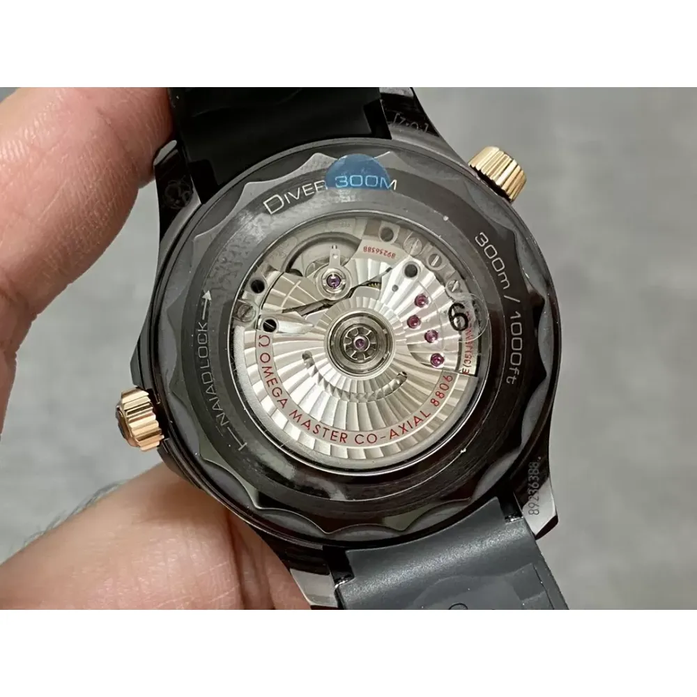 Omega Seamaster A8806 300m 43.5mm 210.62.44.20.01.001 Black Ceramic Black Dial RG Bezel on Black Rubber Strap