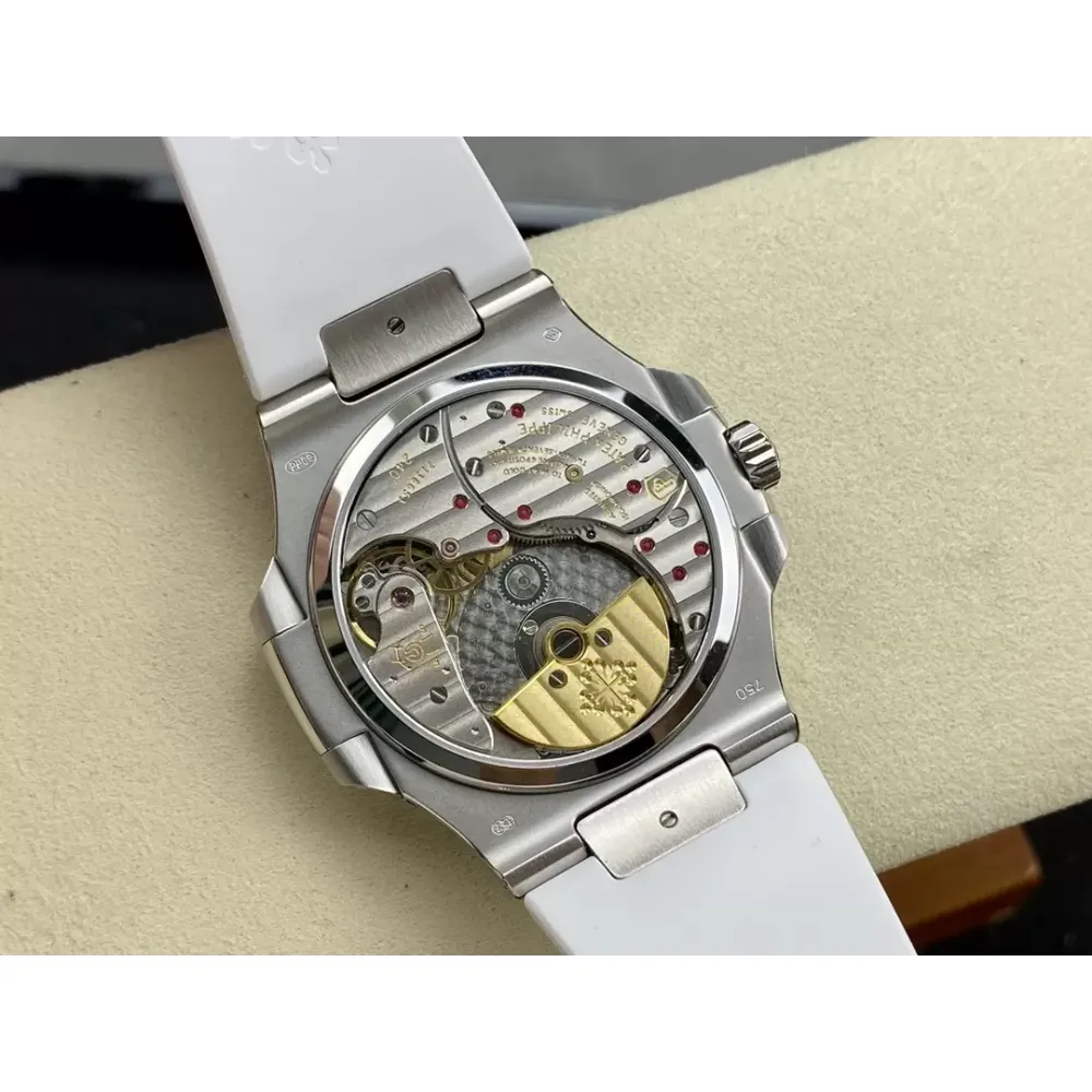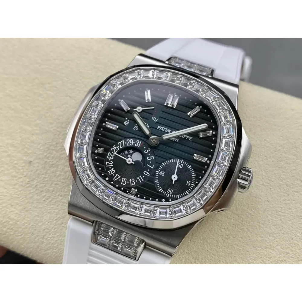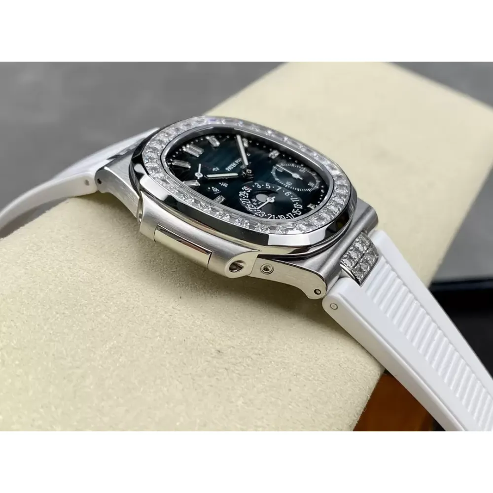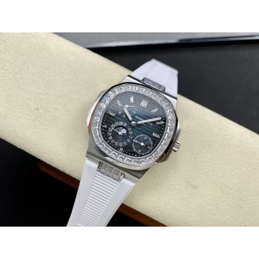 GR new product? Patek Nautilus series nautilus 5712 with crocodile leather strap, 316 stainless steel case, folding buckle super all-in-one Cal.240 PS IRM C LU. There are 265 parts in the movement. The movement gems are the same color as the original pigeon blood?, flat hairspring, 21600 vibrations per hour Gyromax balance wheel with adjustment weight, stable and error-free. Ultra-thin case, with the thickness of 0.95cm, the first in its class on the market, second only to the original thickness, newly revised stainless steel strap, the hinge part is developed based on the disassembly of the real Patek Philippe Nautilus stainless steel strap, and the fit effect is consistent with the original product, instant sale For all copies on the market, the hinge opening and closing angles are the same as the originals, and the locking sound is the same as the originals. The GR factory's exclusive "blue ghost and gray ghost" are infinitely close to the original version, and they stand out from the crowd.