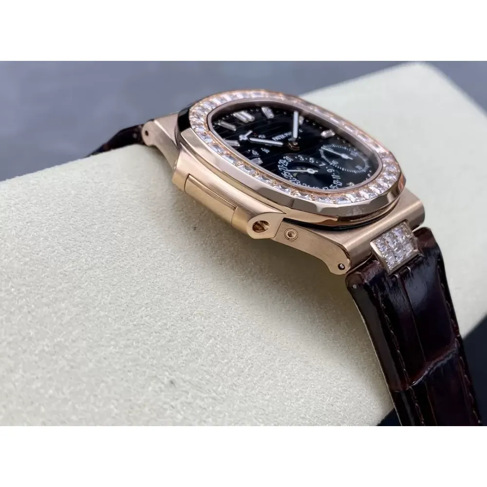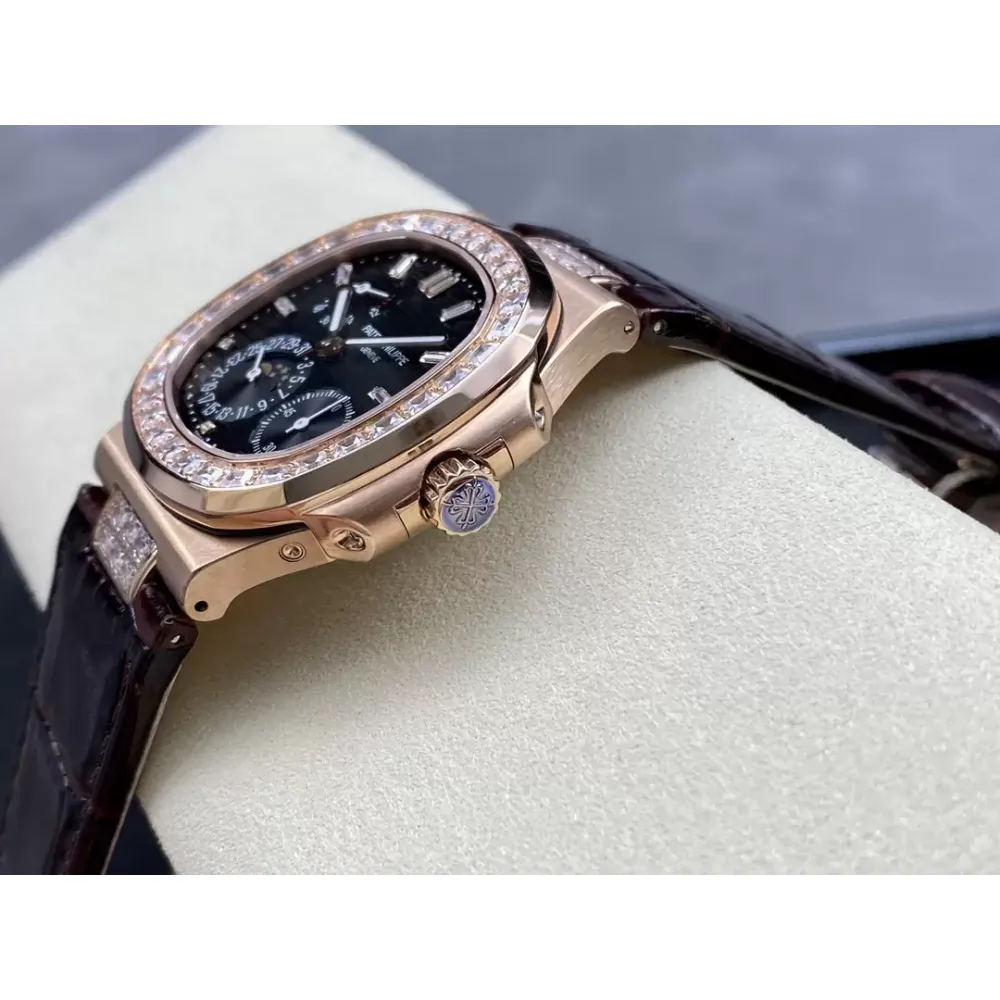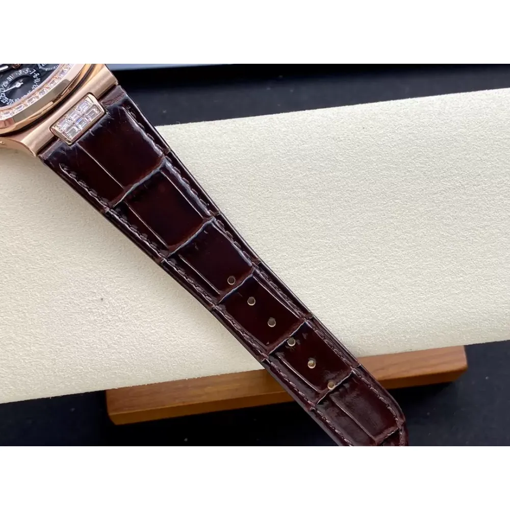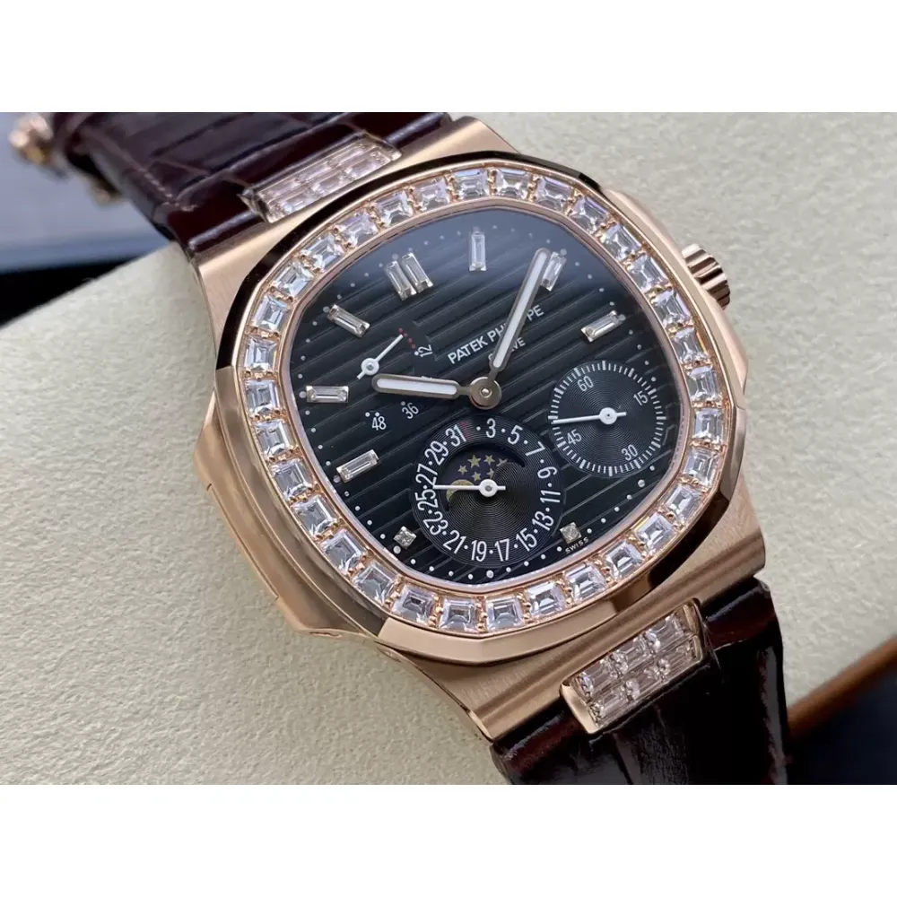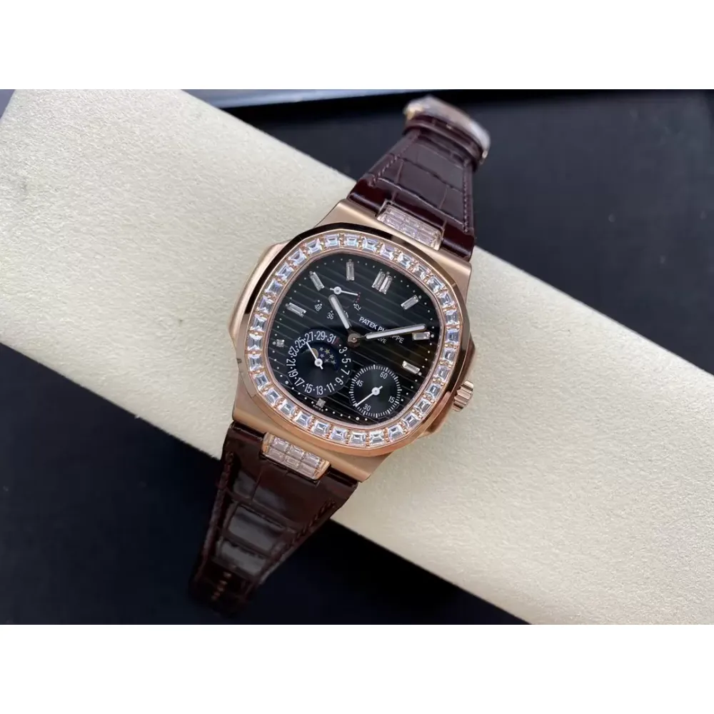 GR new product? Patek Nautilus series nautilus 5712 with crocodile leather strap, 316 stainless steel case, folding buckle super all-in-one Cal.240 PS IRM C LU. There are 265 parts in the movement. The movement gems are the same color as the original pigeon blood?, flat hairspring, 21600 vibrations per hour Gyromax balance wheel with adjustment weight, stable and error-free. Ultra-thin case, with the thickness of 0.95cm, the first in its class on the market, second only to the original thickness, newly revised stainless steel strap, the hinge part is developed based on the disassembly of the real Patek Philippe Nautilus stainless steel strap, and the fit effect is consistent with the original product, instant sale For all copies on the market, the hinge opening and closing angles are the same as the originals, and the locking sound is the same as the originals. The GR factory's exclusive "blue ghost and gray ghost" are infinitely close to the original version, and they stand out from the crowd.