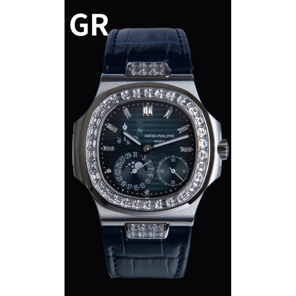 GR’s new product ? Baida Nautilus series nautilus 5724 with crocodile leather ? strap, 316 stainless steel case, folding buckle super all-in-one machine Cal.240 PS IRM C LU. The whole movement has 265 parts, the movement gemstone is the same color as the original one-color pigeon blood, flat hairspring, 21600 vibrations per hour Gyromax balance wheel with adjustment weight, stable and error-free. Ultra-thin case, the thickness of the same level in the market is 0.95cm, second only to the original thickness, the newly revised stainless steel strap, the hinge part is developed according to the dismantling and development of the real Patek Philippe Nautilus stainless steel strap, and the fit effect is the same as the genuine one. All replicas on the market, the hinge opening and closing angle is the same as the original, and the sound of locking is the same as the original. GR Factory’s exclusive “Blue Ghost and Gray Ghost” are infinitely close to the original on both sides, and they are even more disdainful of the crowd.