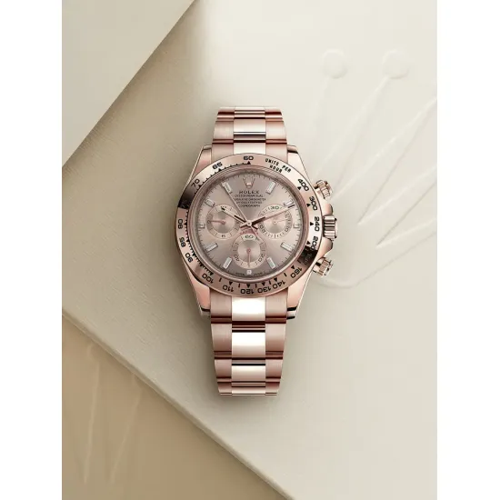 With its tachymetric scale, its three counters and its pushers, the Cosmograph Daytona was designed to be the ultimate timing tool for endurance racing drivers. The bezel features a tachymetric scale to read average speed over a given distance based on elapsed time. This scale offers optimal legibility, making the Cosmograph Daytona the ideal instrument for measuring speeds up to 400 units per hour, expressed in kilometres or miles.
