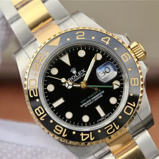 GMT-Master II Swiss replica watches looks and functions identical to a genuine Rolex. Our Swiss cloned Rolex GMT movements feature a 24-hour hand to display a second time zone. Also they feature every Rolex engraving, serial numbering and they are lubed with Nano-oil Swiss lubricants. Designed to last a lifetime, visually and functionally our movements 28.000 vibrations per hour offers the same fine sweep seconds hand “Rolex” motion as on the genuine Rolex.