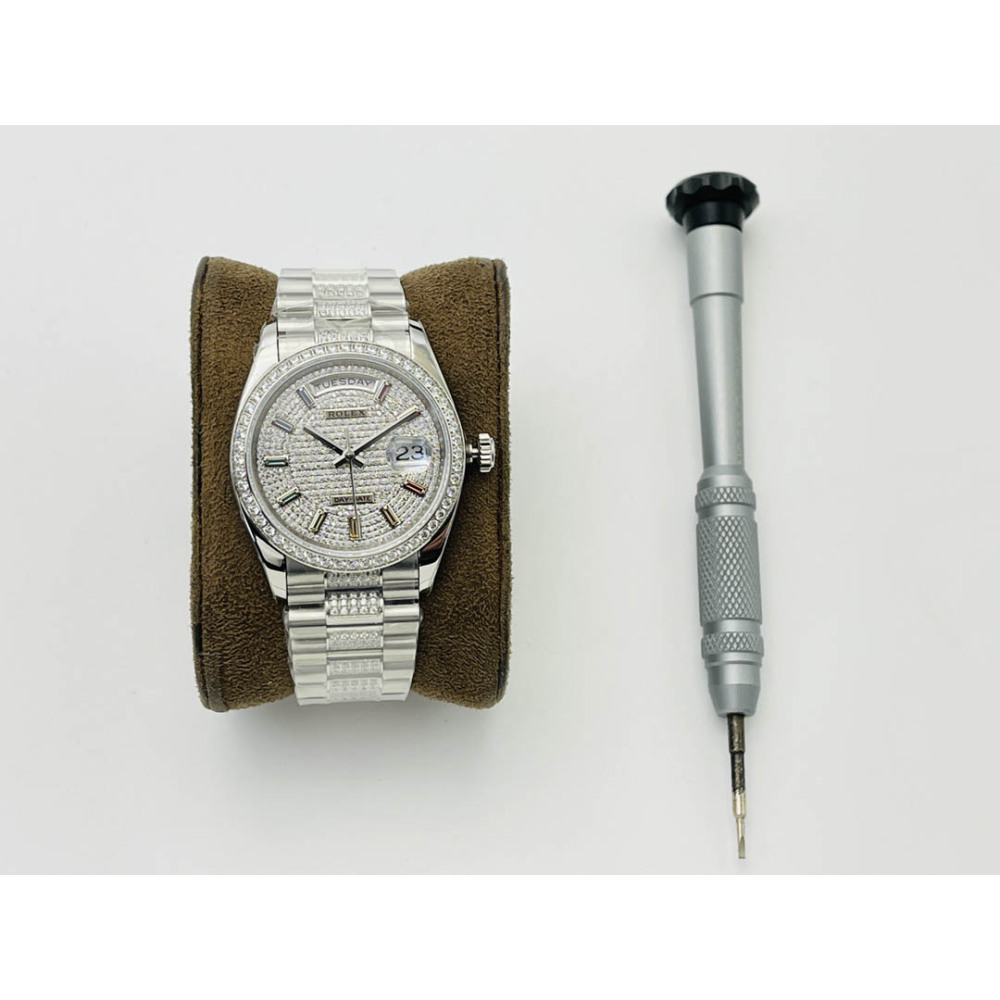 Rolex Day-Date White Gold Dial All Diamond Swiss Clone 3255 Movement
