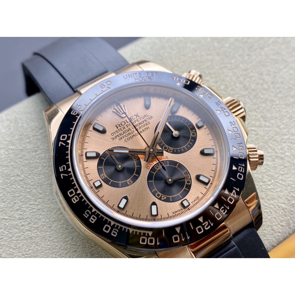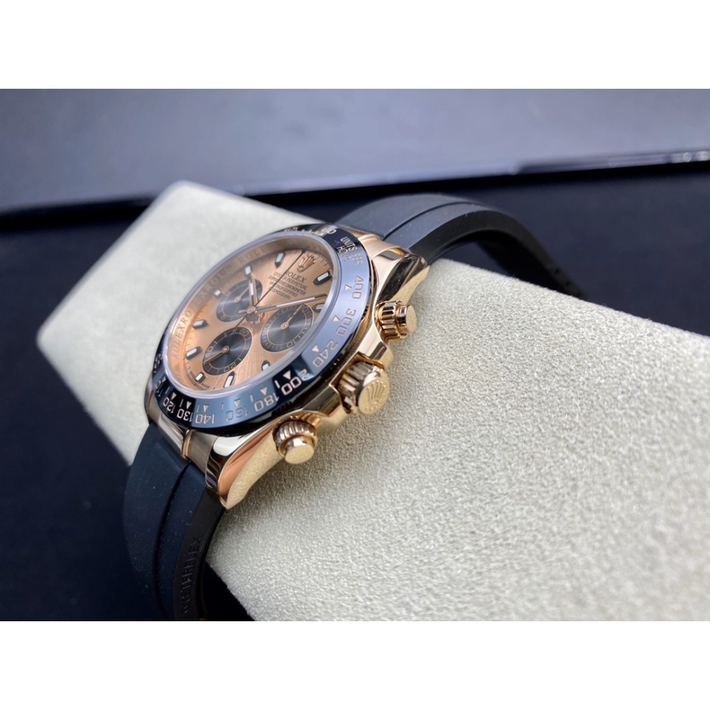 Rolex Daytona 116515 Black Ceramic Bezel Rose Gold Dial Rubber Strap A7750 Movement