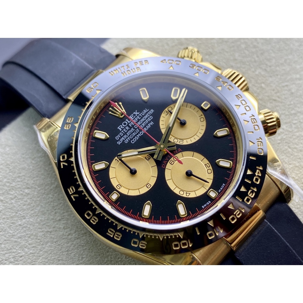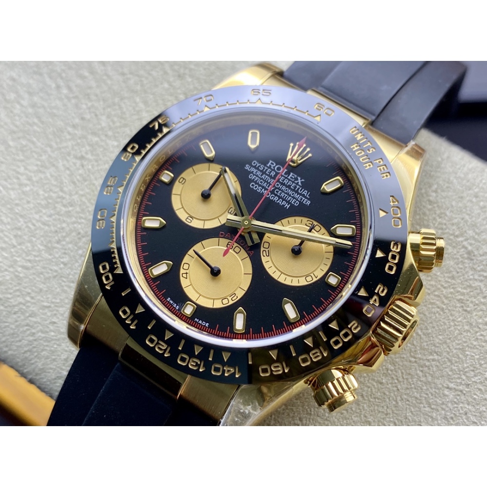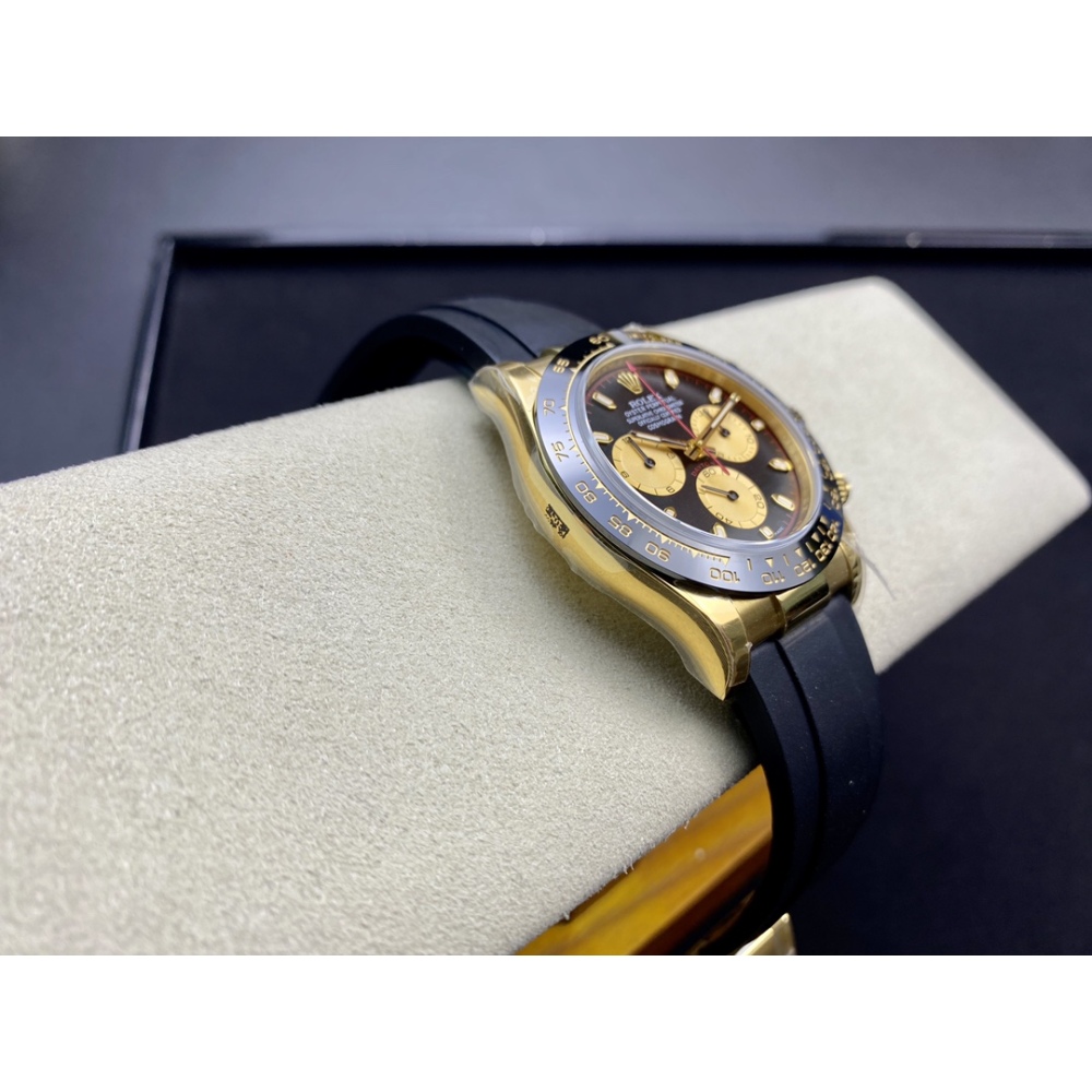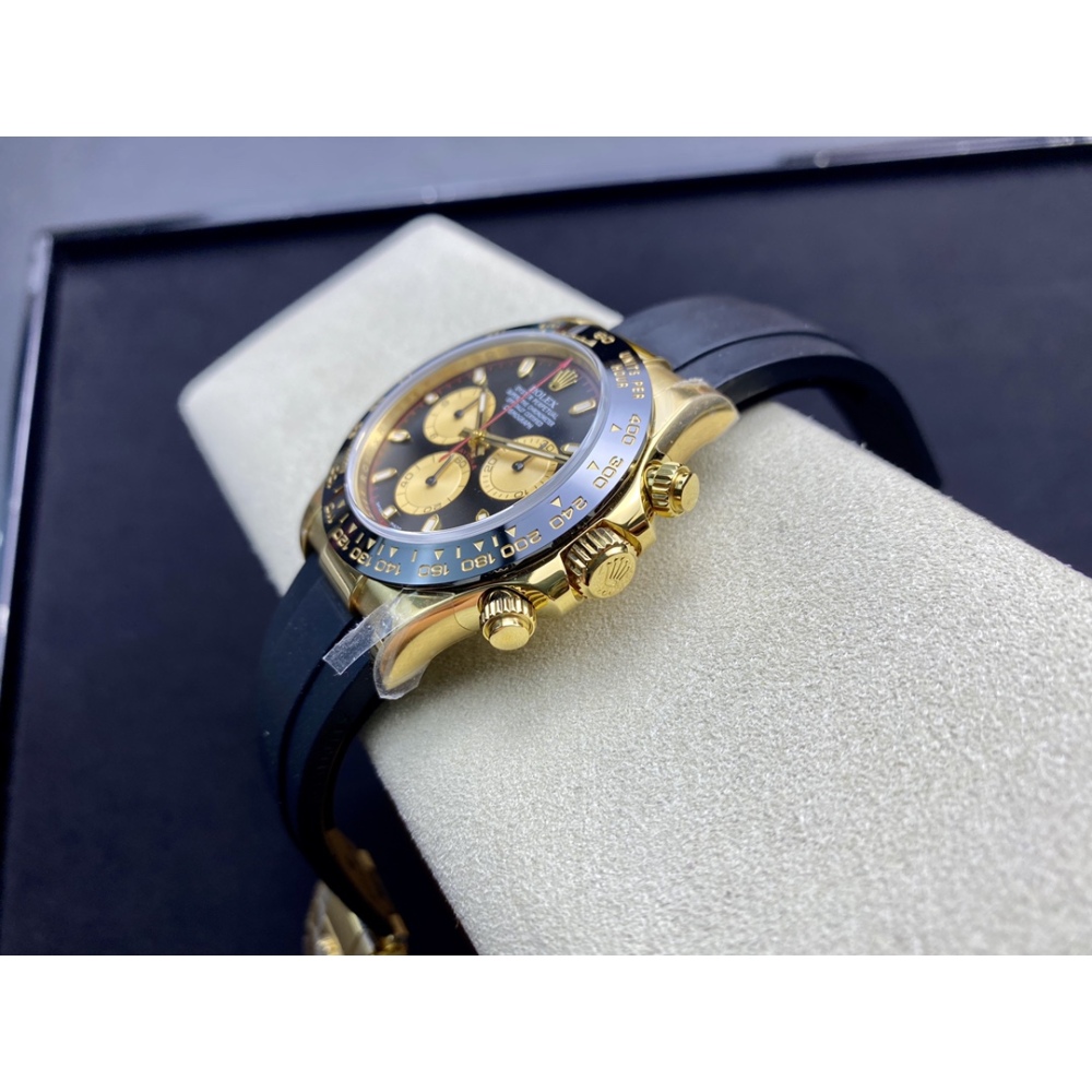 Rolex Daytona 116518 Yellow Gold Black Dial Rubber Strap A4130 Movement