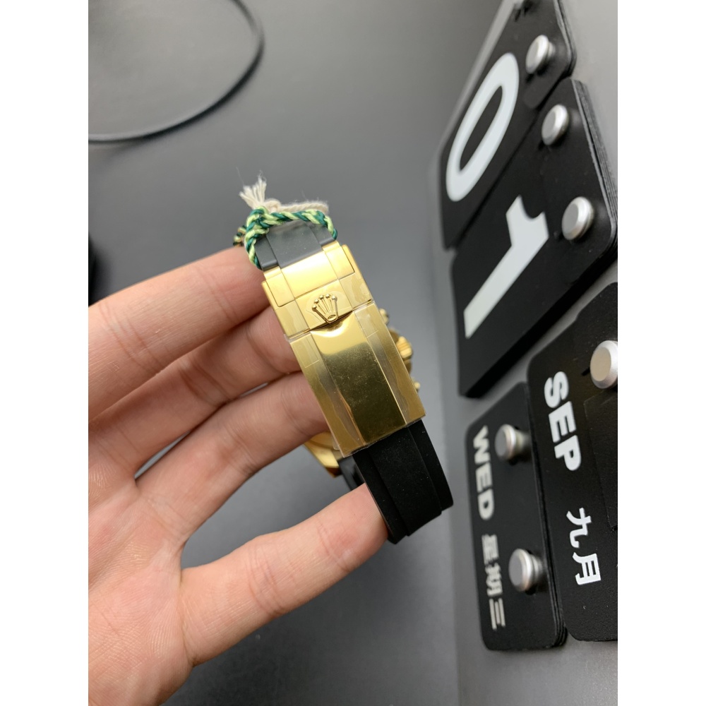 Bezel: Ceramic tachymeter bezel, real gold plated correct markers, same shape and depth as genuine bezel