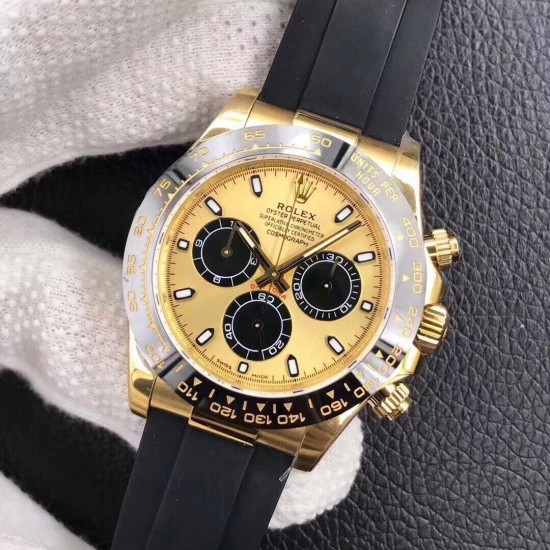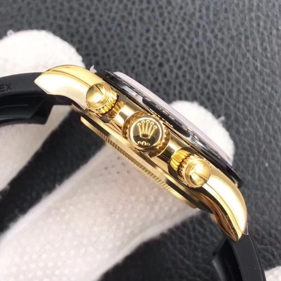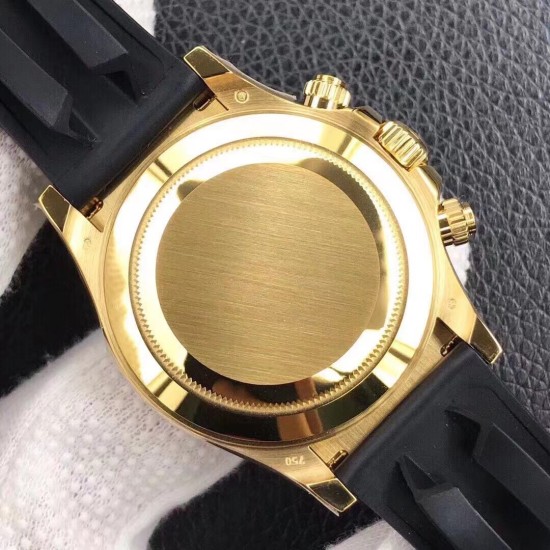 Rolex Daytona 116518LN Black Yellow Gold Dial Rubber Strap A7750 Movement
