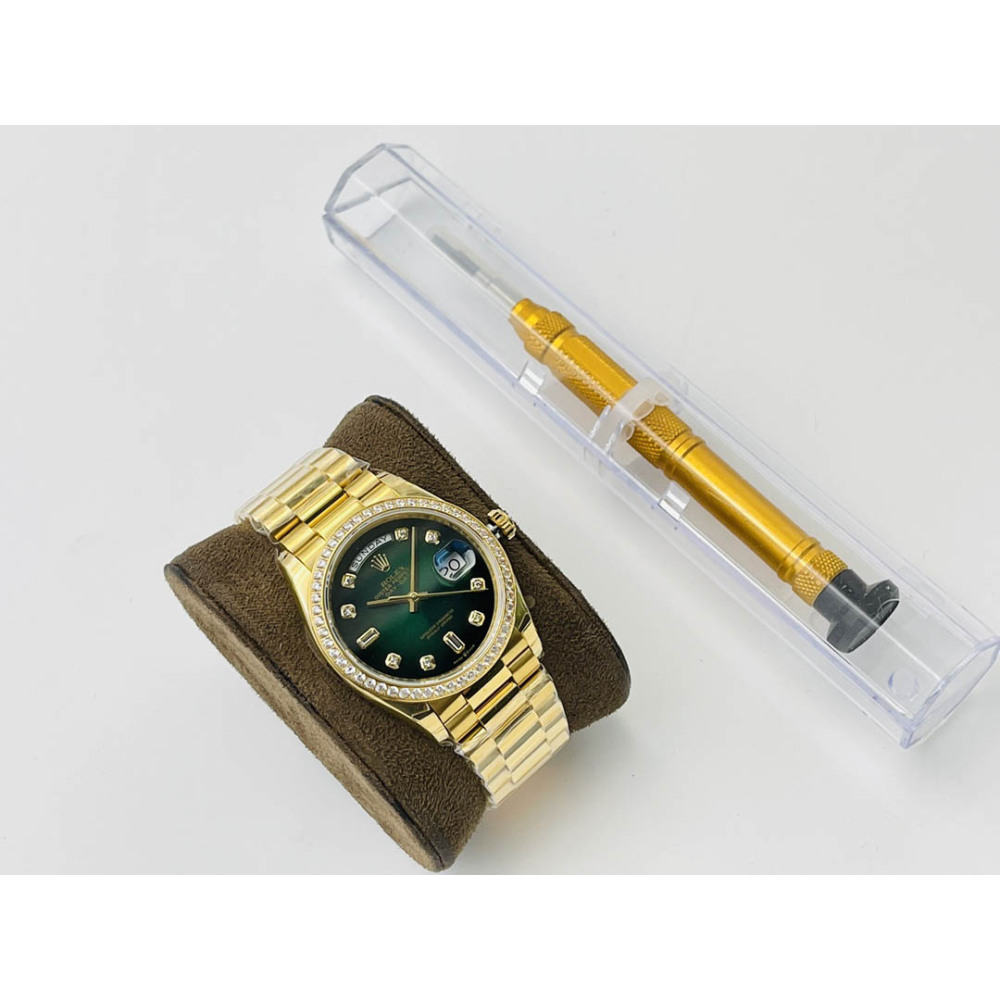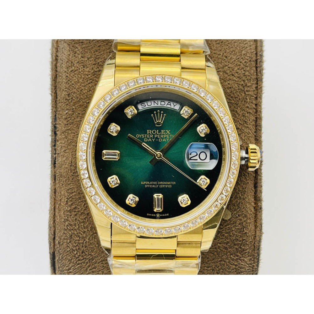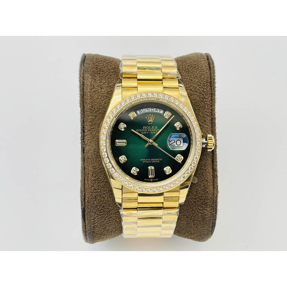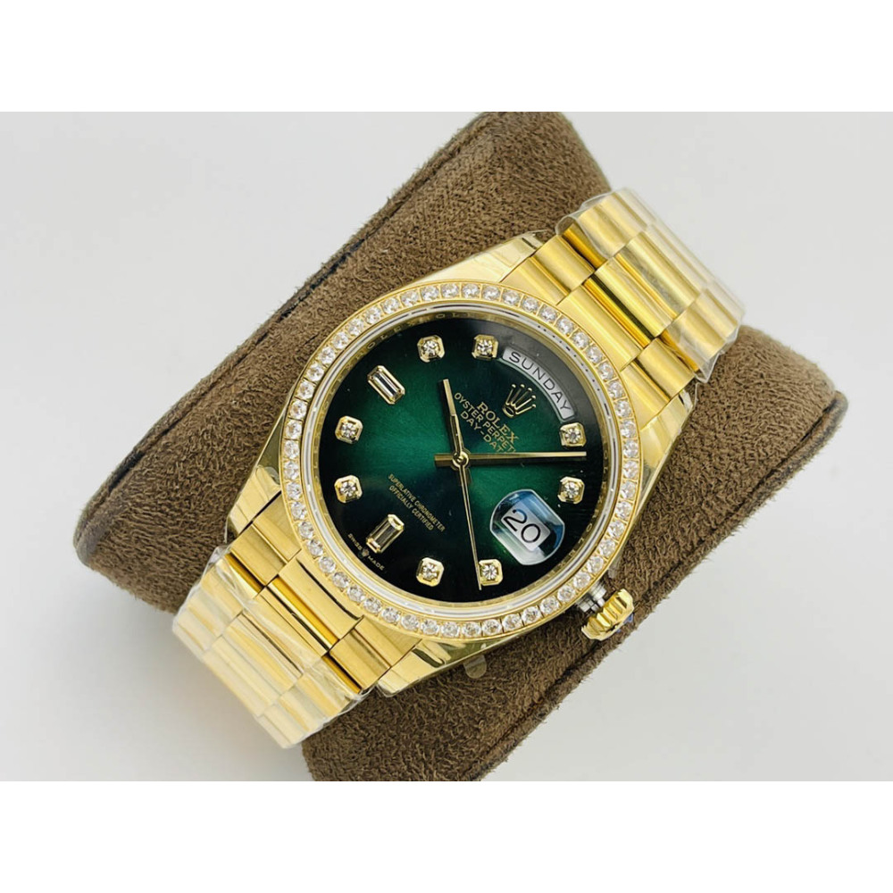 Rolex Day-Date All Gold Green Dial Diamond Bezel Swiss Clone 3255 Movement