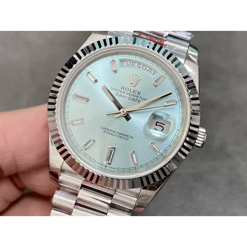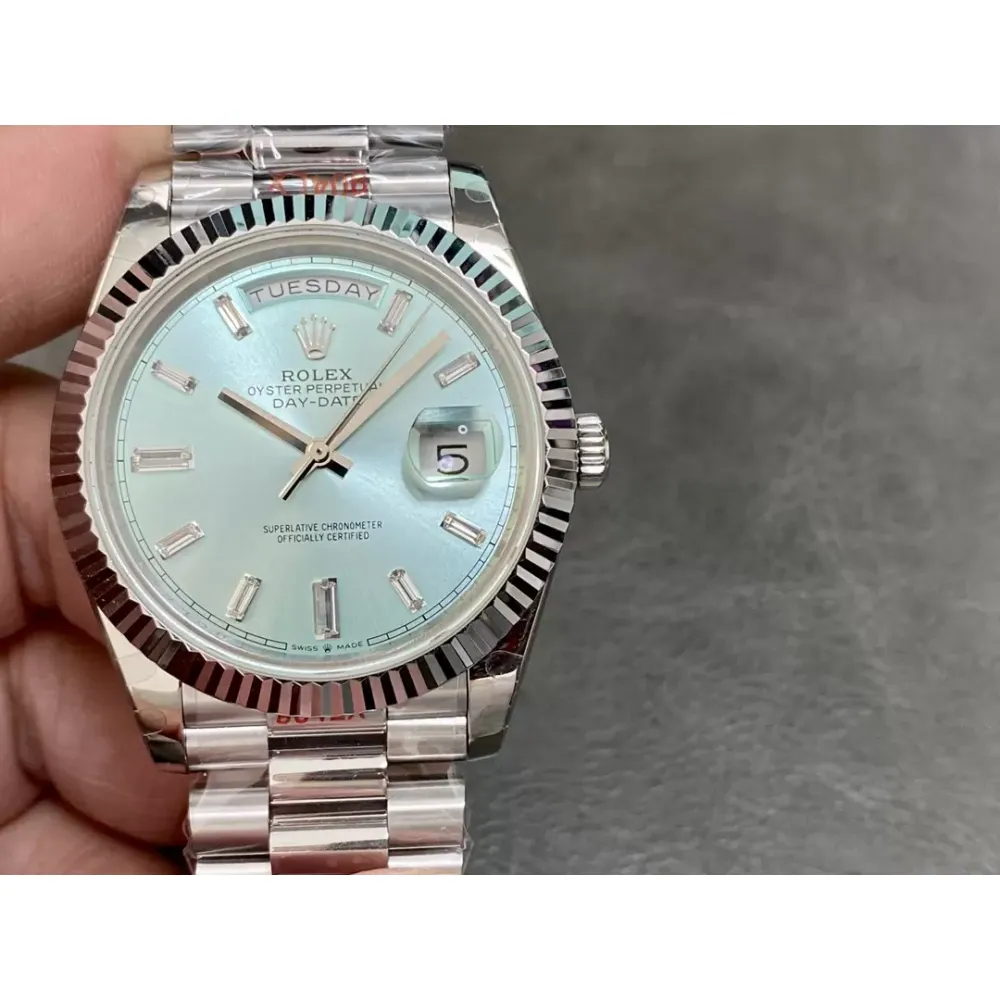 • Rolex DayDate 228236 40mm GMF 1:1 Best Edition Ice Blue Dial Fluted Bezel on SS Bracelet A3255 or A2836 (Tungsten Heavy Version)