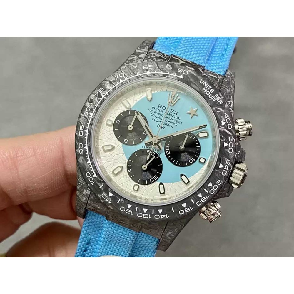 Rolex DIW Modified Datona Carbon Fiber Blue White Dial Swiss 4130 Movement