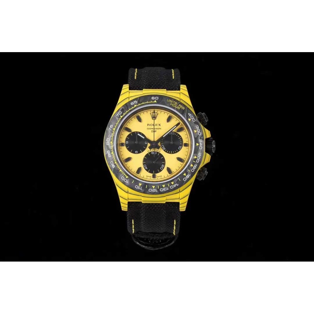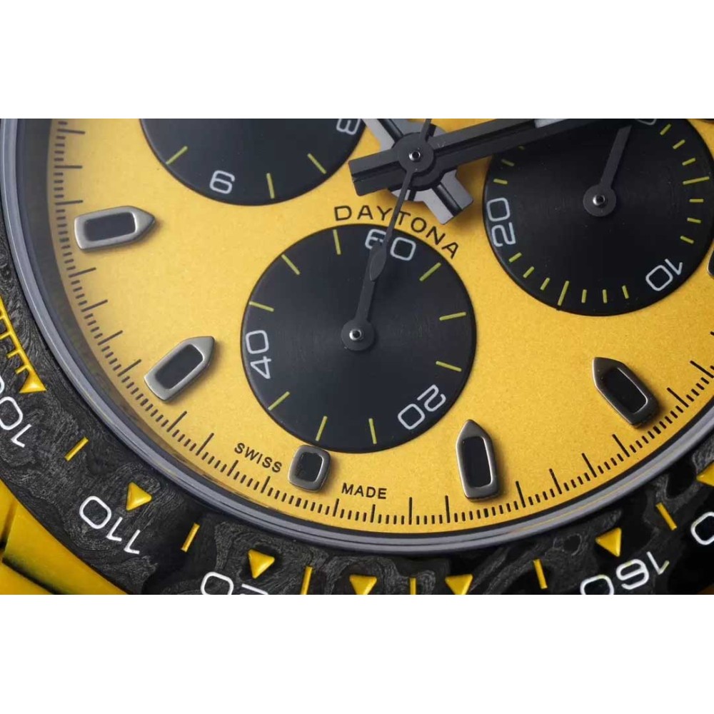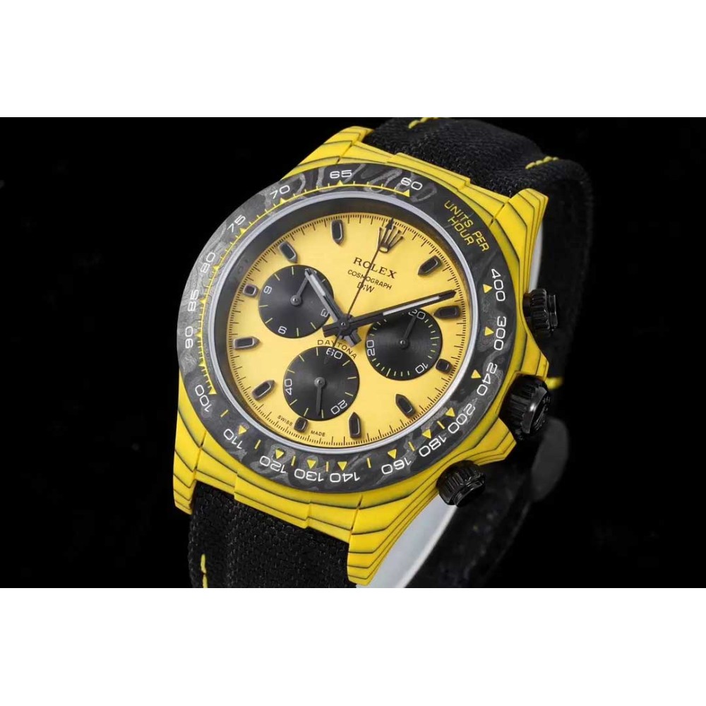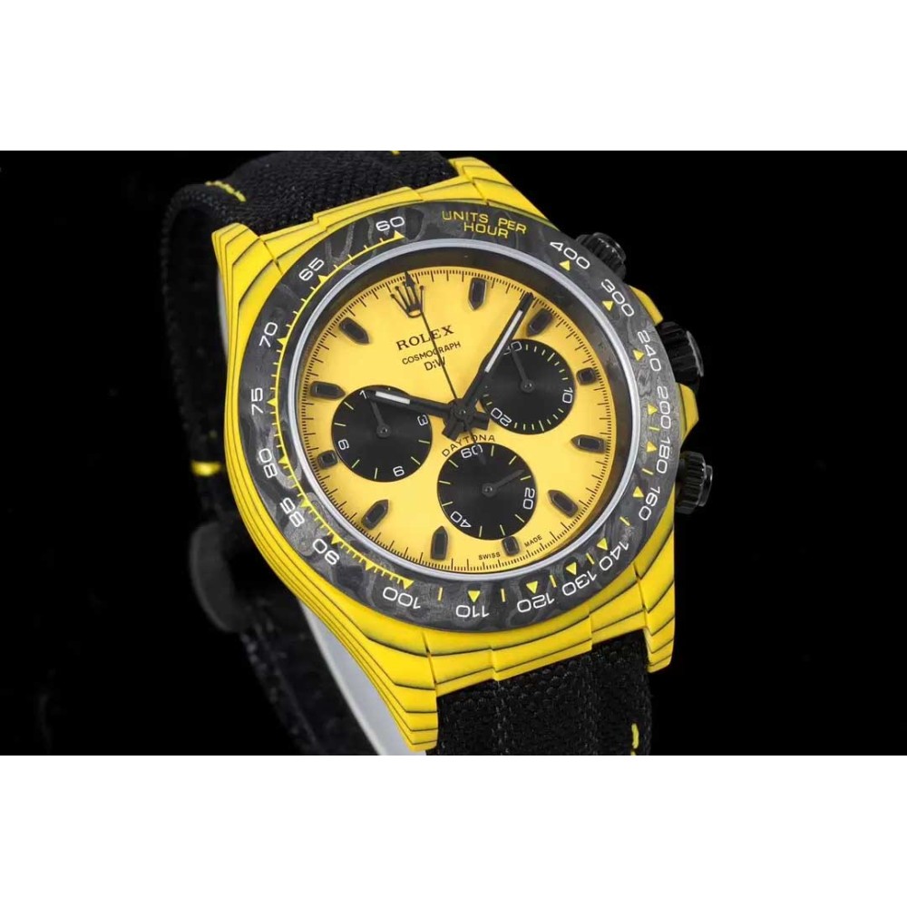 Rolex DIW Modified Datona Carbon Fiber Yellow Black Dial Swiss 4130 Movement