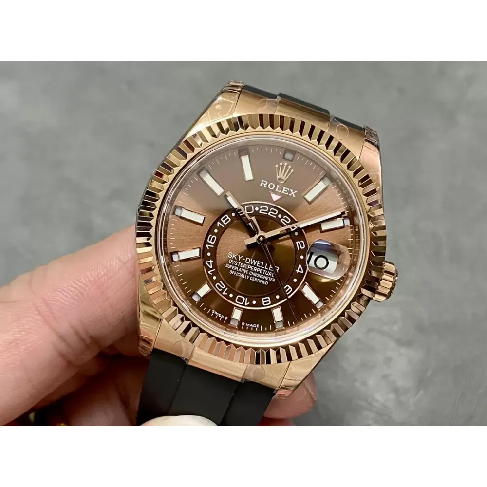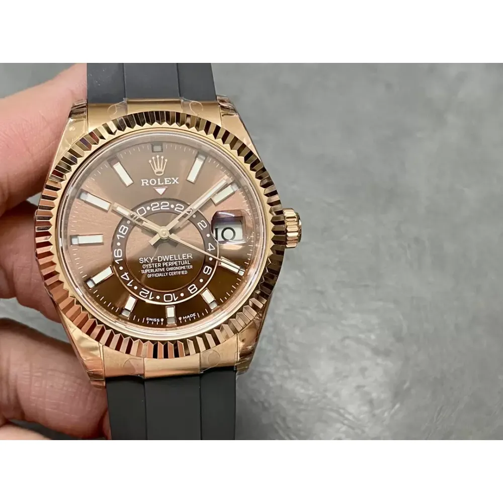 Rolex Sky-Dweller m336235-0002 rose gold and Chocolate color Dial Rubber Strap 2824 Movement