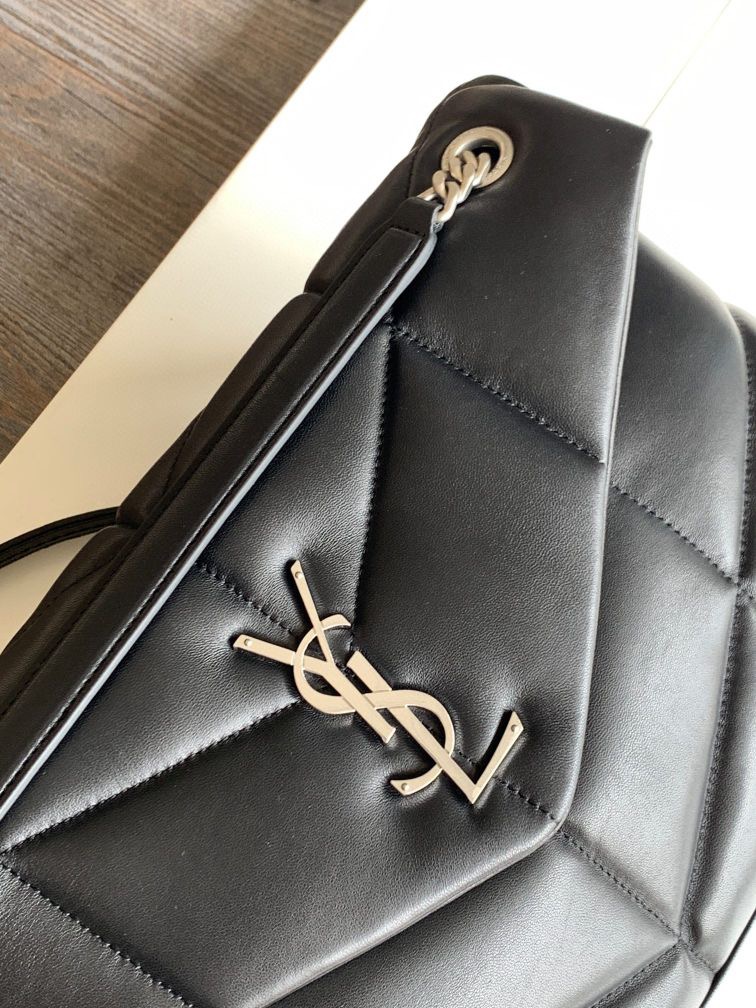 【Original Factory Leather】Lou Lou Puffer - Large 35 cm. Quilted lambskin bag, crafted from genuine factory leather, with a soft and delicate touch, offering a sensation akin to holding a cloud; the classic Y-family logo, chain, and clasp hardware are all made of burnished matte silver hardware. The bag's opening is secured with a magnetic snap closure after folding, ensuring top-notch sealing and security. Inside, it features one zippered compartment for storing phones and valuables, with no additional inner pocket design, allowing for versatile use! Authentic leather! Authentic leather! Authentic leather!