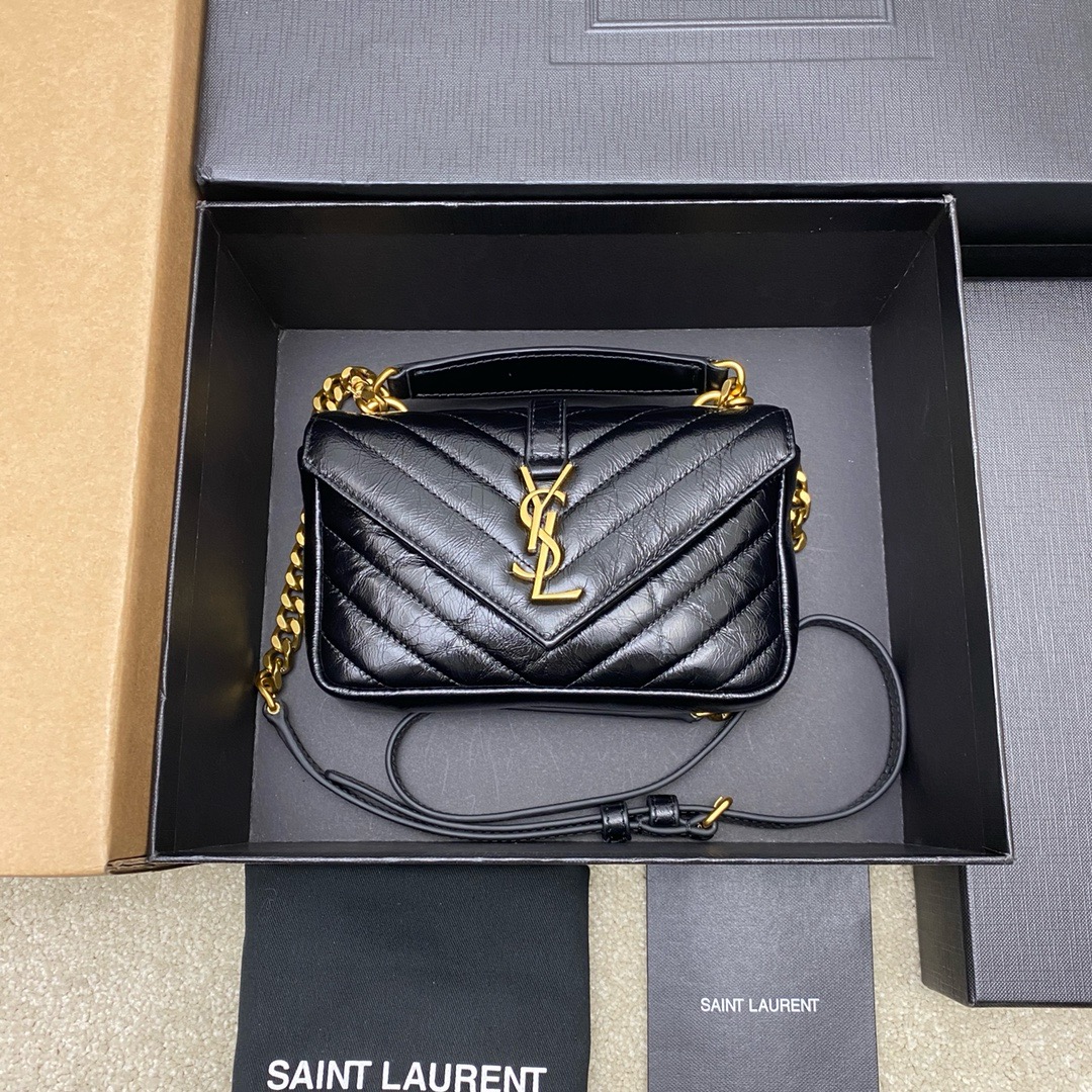 🌈New College shiny cracked mini messenger bag😘Multifunctional item with top handle and detachable leather splicing chain long shoulder strap, classic and more casual, various concave shapes, recommended for everyone! Retro waxed leather is really super beautiful👍