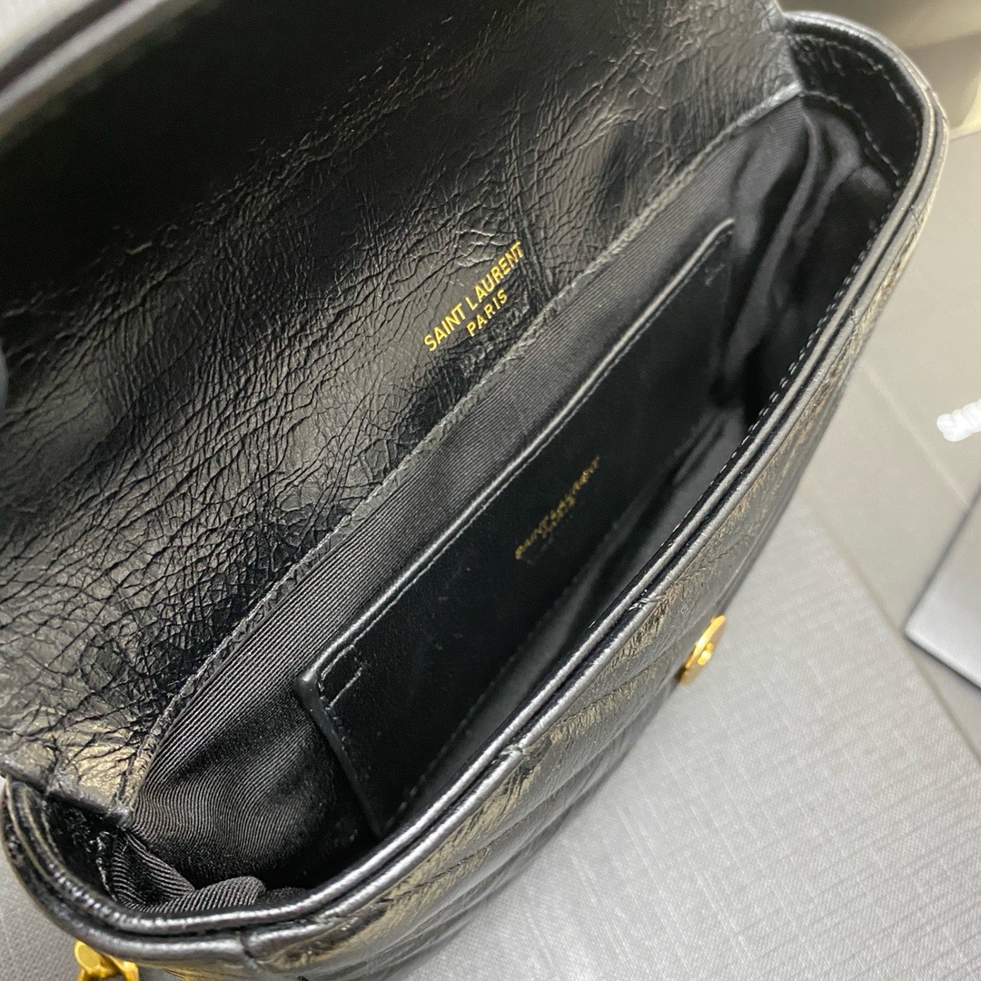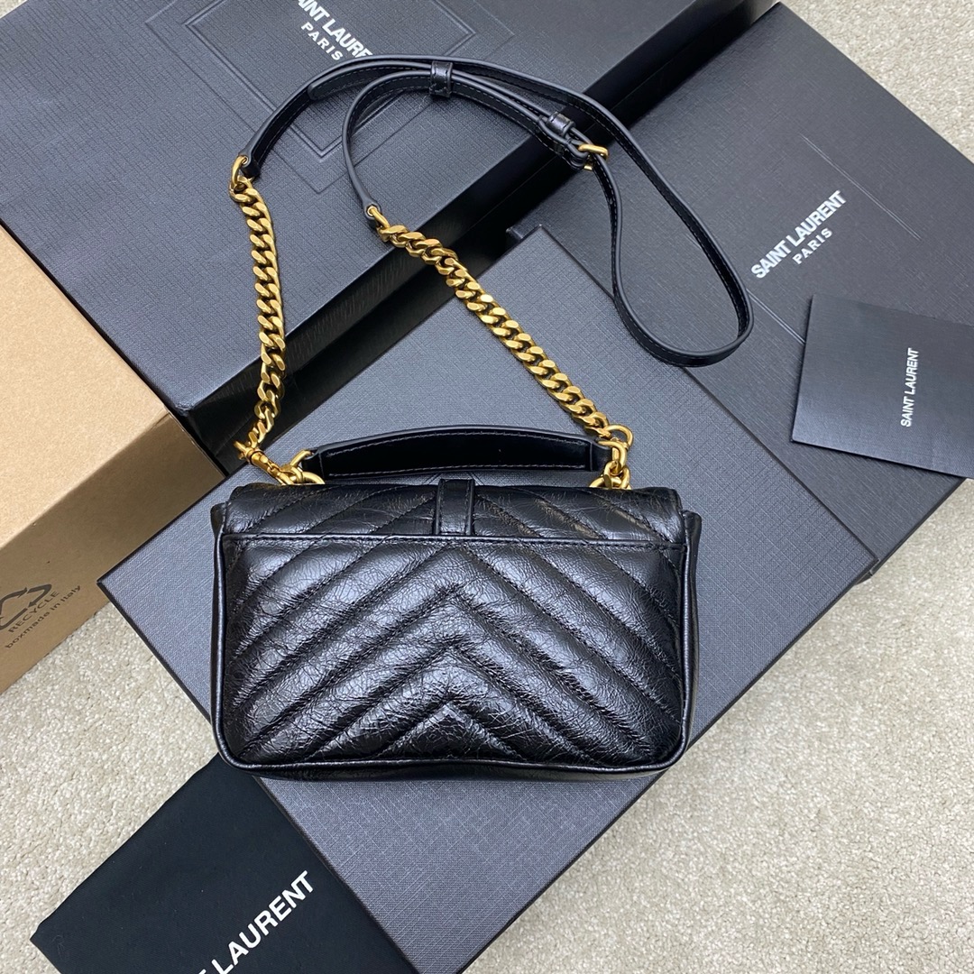• New College Shiny Cracked Mini Messenger Bag Waxed Black Leather/Antique Gold 779430
