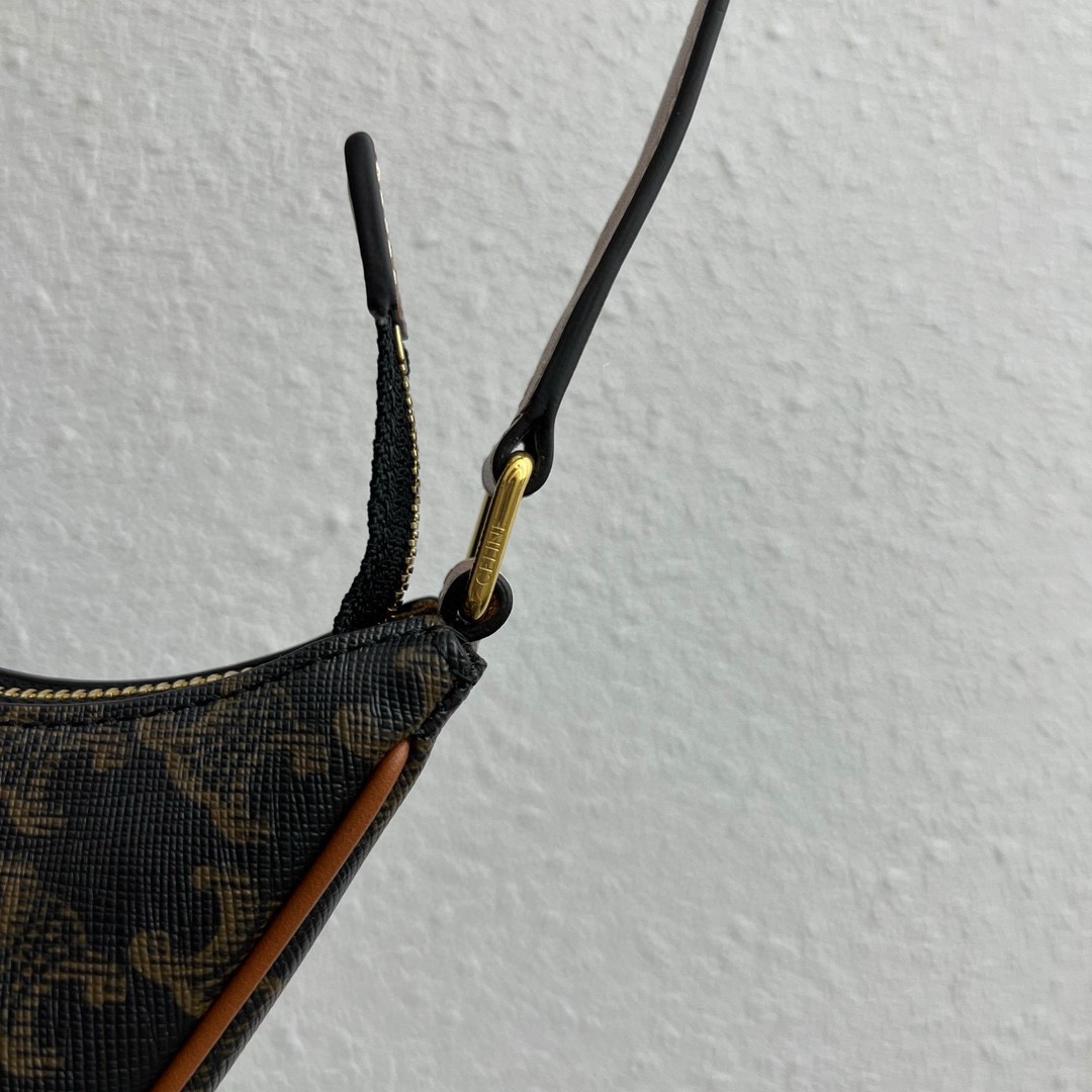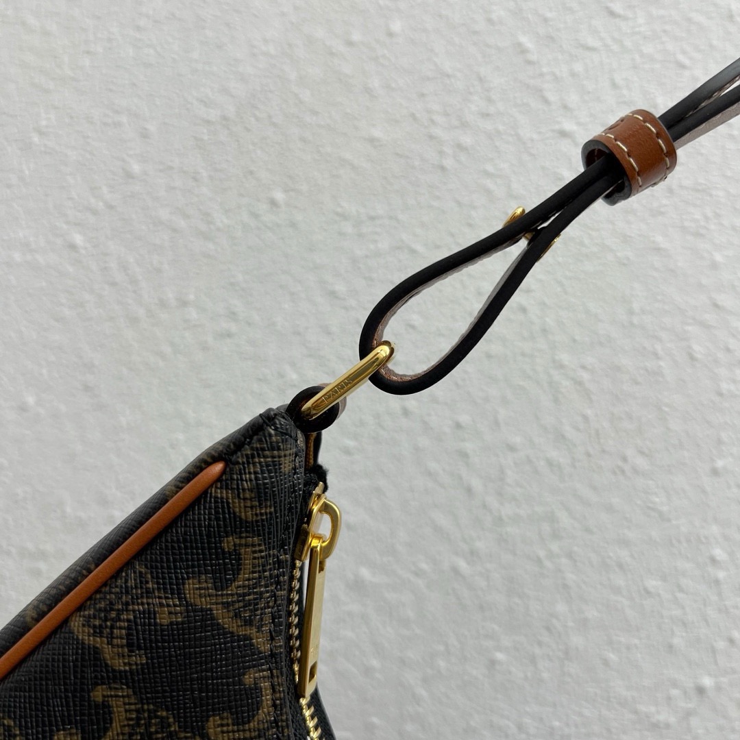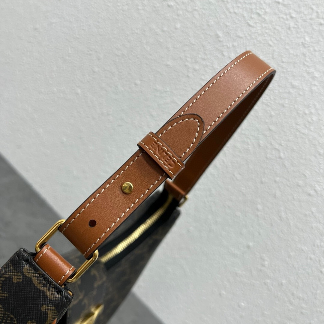 TRIOMPHE CANVAS logo printed AVA underarm bag (black), cowhide edging, fabric lining, gold shoulder and hand, zipper closure, leather flap, with TRIOMPHE magnetic buckle 1 inner flat pocket Adjustable shoulder strap, minimum length 8 inches (22 cm), maximum length 9 inches (23 cm)